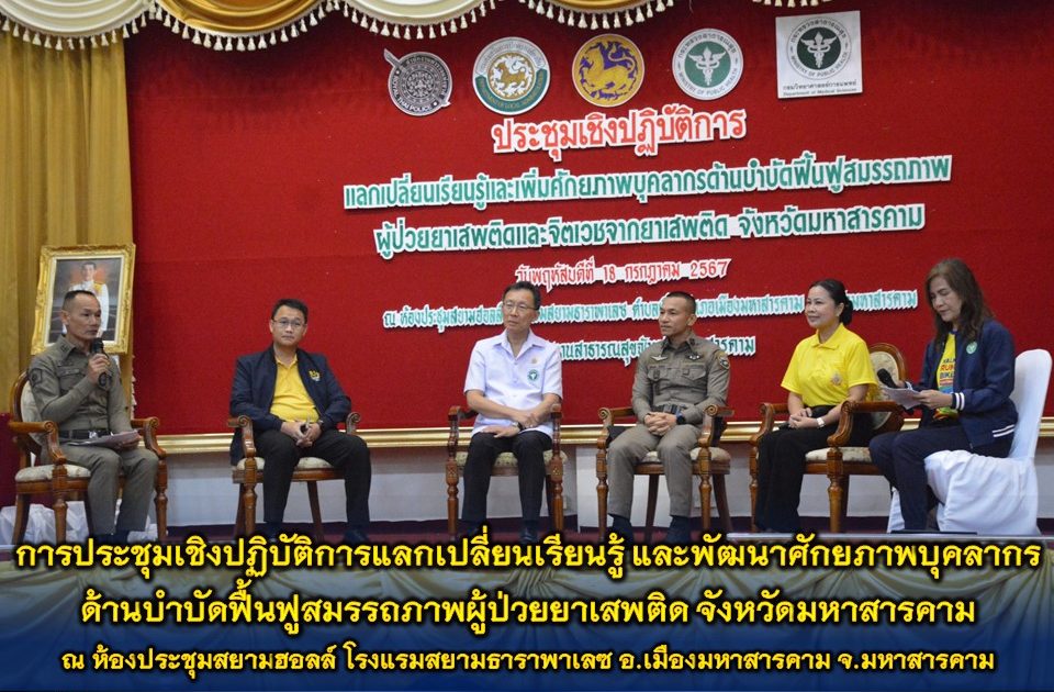 🔸จากนั้น เวลา 10.00 – 12.00 น. พล.ต.ต.พรชัย ชลอเดช ผบก.ภ.จว.มหาสารคาม มอบหมายให้ พ.ต.อ.ไกรทอง ชัยสิงห์ ผกก.สภ.เมืองมหาสารคาม เป็นตัวแทน ภ.จว.มหาสารคาม ร่วมเวทีเสวนาในหัวข้อ “นโยบายขับเคลื่อนป้องกัน ปราบปรามและการบำบัดรักษา/ฟื้นฟูผู้ติดยาเสพติด และนโยบายเร่งรัดบำบัดฟื้นฟูสมรรถภาพผู้ป่วยยาเสพติด 3 เดือน (1 มิถุนายน – 31 สิงหาคม 2567)”