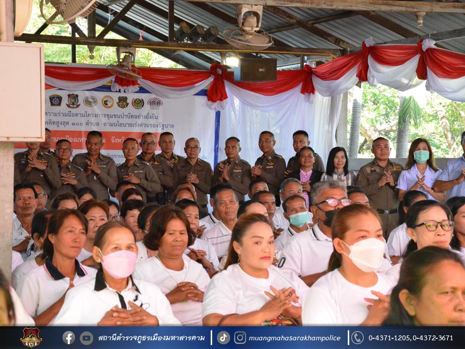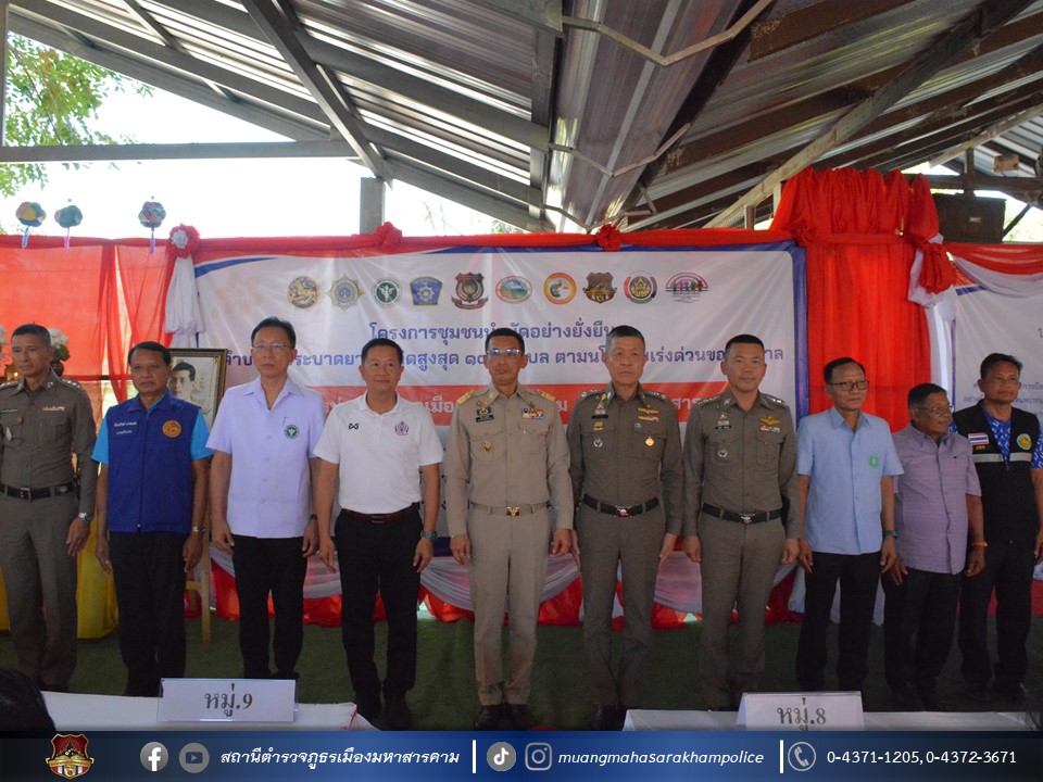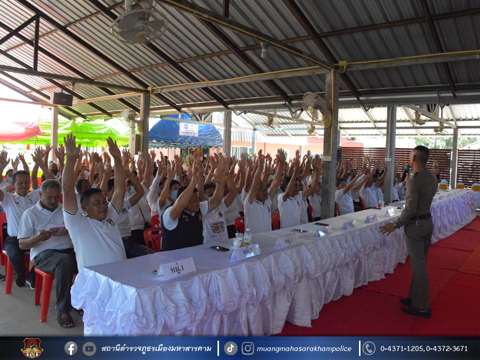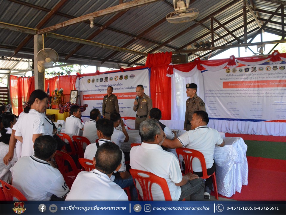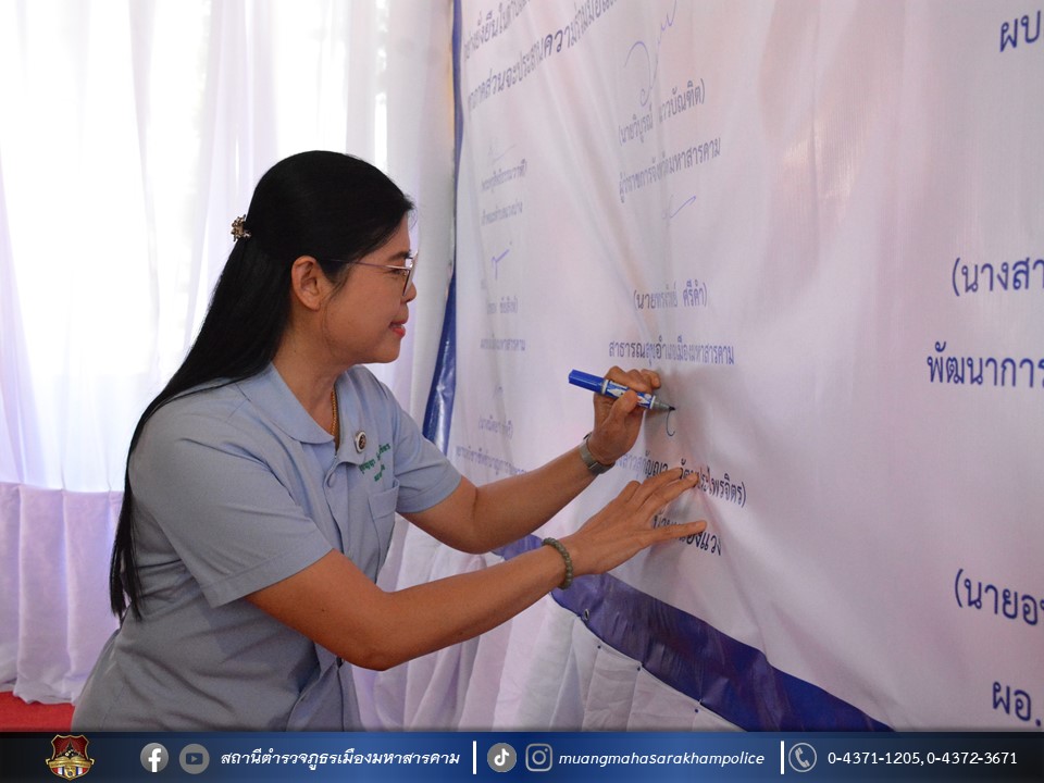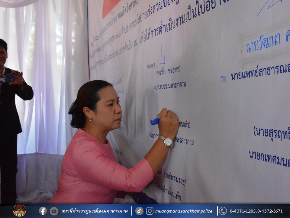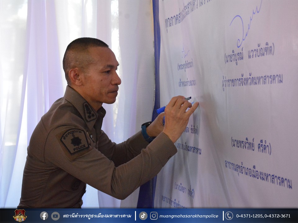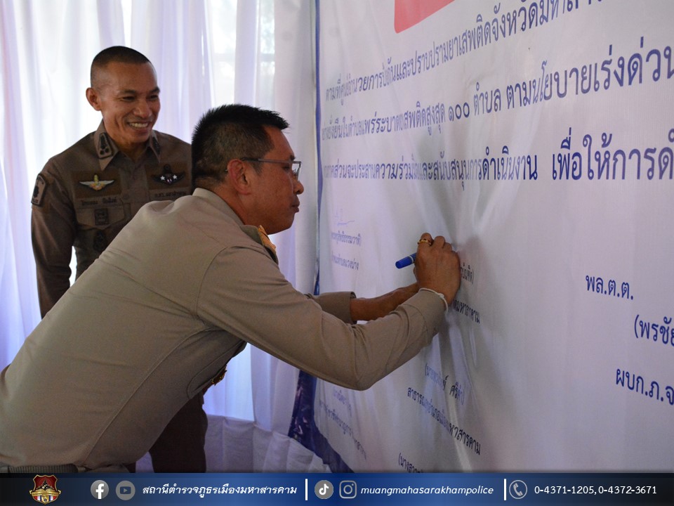 🔸จากนั้น พระครูสิทธิธรรมวาที เจ้าคณะตำบลแวงย่าง, นายวิบูรณ์ แววบัณฑิต ผู้ว่าราชการจังหวัดมหาสารคาม, พล.ต.ต.พรชัย ชลอเดช ผบก.ภ.จว.มหาสารคาม, นายวัฒนา ศรีวัฒนะ รองนายแพทย์สาธารณสุขจังหวัดมหาสารคาม, นายนันทวิทย์ นาคแสง นายอำเภอเมืองมหาสารคาม, พ.ต.อ.ไกรทอง ชัยสิงห์ ผกก.สภ.เมืองมหาสารคาม, นายทรงวิทย์ ศรีคำ สาธารณสุขอำเภอเมืองมหาสารคาม, น.ส.สุวิมล เจ้าแก่นแก้ว พัฒนาการอำเภอเมืองมหาสารคาม, นายสุรฤทธิ์ รักษาชาติ นายกเทศมนตรีตำบลแวงน่าง, นายระวี ไชยศักดิ์ นายกองค์การบริหารส่วนตำบลแวงน่าง, นางนิตยา ฤทธิ์ศรี พยาบาลวิชาชีพชำนาญการ รพ.มหาสารคาม, น.ส.สุกัญญา วัฒนประไพรจิตร ผอ.รพ.สต.แวงน่าง, นายอนันต์ มาตย์พรมราช ผอ.รพ.สต.บ้านโนนเพ็ก, นายพิชิต รัตนเจริญ กำนันตำบลแวงน่าง นายศุภมิตร นาถมทอง รักษาการ ผอ.รร.บ้านหนองแวง ร่วมลงนามบันทึกข้อตกลงให้ความร่วมมือตาม “โครงการชุมชนบำบัดอย่างยั่งยืนในตำบลแพร่ระบาดยาเสพติดสูงสุด 100 ตำบล ตามนโยบายเร่งด่วนของรัฐบาล”ของสถานีตำรวจภูธรเมืองมหาสารคาม พื้นที่ตำบลแวงน่าง อำเภอเมืองมหาสารคาม จังหวัดมหาสารคาม ประจำปี 2567 เพื่อให้ทุกภาคส่วนประสานความร่วมมือและสนับสนุนการดำเนินงานให้เป็นไปอย่างมีประสิทธิภาพ และเกิดประโยชน์สูงสุดแก่ประชาชน