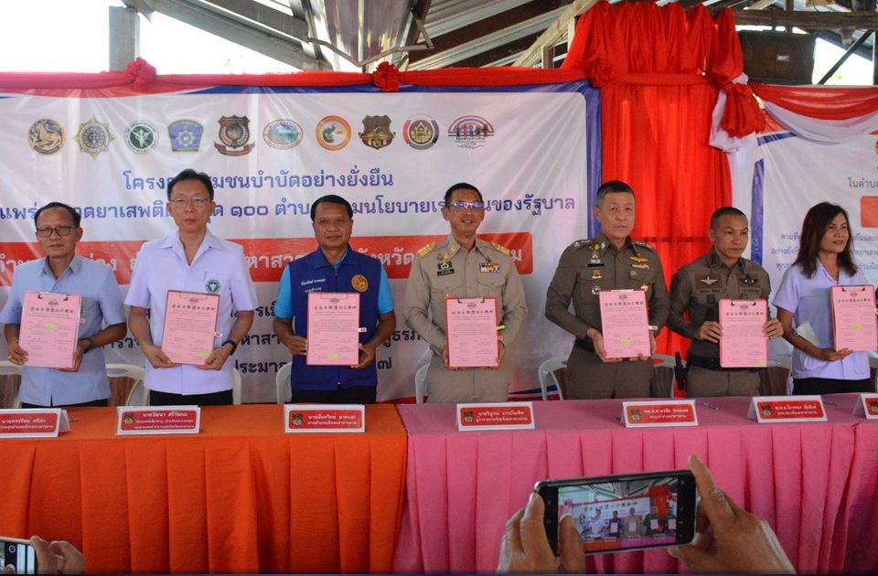 🔸จากนั้น พระครูสิทธิธรรมวาที เจ้าคณะตำบลแวงย่าง, นายวิบูรณ์ แววบัณฑิต ผู้ว่าราชการจังหวัดมหาสารคาม, พล.ต.ต.พรชัย ชลอเดช ผบก.ภ.จว.มหาสารคาม, นายวัฒนา ศรีวัฒนะ รองนายแพทย์สาธารณสุขจังหวัดมหาสารคาม, นายนันทวิทย์ นาคแสง นายอำเภอเมืองมหาสารคาม, พ.ต.อ.ไกรทอง ชัยสิงห์ ผกก.สภ.เมืองมหาสารคาม, นายทรงวิทย์ ศรีคำ สาธารณสุขอำเภอเมืองมหาสารคาม, น.ส.สุวิมล เจ้าแก่นแก้ว พัฒนาการอำเภอเมืองมหาสารคาม, นายสุรฤทธิ์ รักษาชาติ นายกเทศมนตรีตำบลแวงน่าง, นายระวี ไชยศักดิ์ นายกองค์การบริหารส่วนตำบลแวงน่าง, นางนิตยา ฤทธิ์ศรี พยาบาลวิชาชีพชำนาญการ รพ.มหาสารคาม, น.ส.สุกัญญา วัฒนประไพรจิตร ผอ.รพ.สต.แวงน่าง, นายอนันต์ มาตย์พรมราช ผอ.รพ.สต.บ้านโนนเพ็ก, นายพิชิต รัตนเจริญ กำนันตำบลแวงน่าง นายศุภมิตร นาถมทอง รักษาการ ผอ.รร.บ้านหนองแวง ร่วมลงนามบันทึกข้อตกลงให้ความร่วมมือตาม “โครงการชุมชนบำบัดอย่างยั่งยืนในตำบลแพร่ระบาดยาเสพติดสูงสุด 100 ตำบล ตามนโยบายเร่งด่วนของรัฐบาล”ของสถานีตำรวจภูธรเมืองมหาสารคาม พื้นที่ตำบลแวงน่าง อำเภอเมืองมหาสารคาม จังหวัดมหาสารคาม ประจำปี 2567 เพื่อให้ทุกภาคส่วนประสานความร่วมมือและสนับสนุนการดำเนินงานให้เป็นไปอย่างมีประสิทธิภาพ และเกิดประโยชน์สูงสุดแก่ประชาชน
