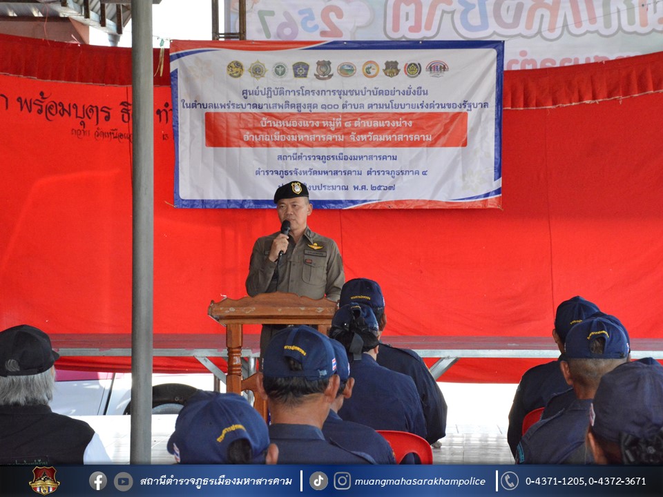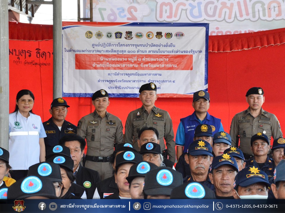 🔸พร้อมด้วยเจ้าหน้าที่ฝ่ายปกครอง อ.เมืองมหาสารคาม, เจ้าหน้าที่ รพ.สต.บ้านหนองแวง, เจ้าหน้าที่ อสม. และเจ้าหน้าที่ตำรวจชุดปฏิบัติการขับเคลื่อนตำบลยั่งยืน สภ.เมืองมหาสารคาม ร่วมพิธีปล่อยแถวตามโครงการการชุมชนบำบัดอย่างยั่งยืนในพื้นที่แพร่ระบาดยาเสพติด 100 ตำบล ตามนโยบายเร่งด่วนรัฐบาล สภ.เมืองมหาสารคาม