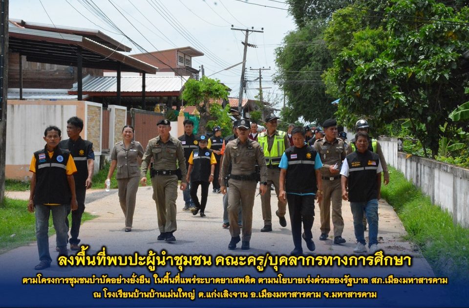 🔸ลงพื้นที่พบปะผู้นำชุมชน/หมู่บ้าน คณะกรรมการคุ้ม คณะครู/บุคลากรทางการศึกษา สอบถามปัญหายาเสพติดภายในชุมชน/หมู่บ้าน เพื่อเป็นมาตรการเชิงรุกแก้ปัญหายาเสพติดตามนโยบายรัฐบาล ทั้งการป้องกัน ปราบปราม และการนำผู้ที่เกี่ยวข้องกับยาเสพติดเข้าสู่กระบวนการบำบัดรักษา โดยการอาศัยการมีส่วนร่วมของทุกภาคส่วนในทุกมิติ ณ โรงเรียนบ้านบ้านเม่นใหญ่ ต.แก่งเลิงจาน อ.เมืองมหาสารคาม จ.มหาสารคาม