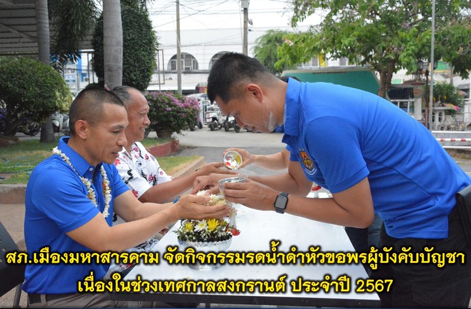 🔸จากนั้น พ.ต.อ.ไกรทอง ชัยสิงห์ ผกก.สภ.เมืองมหาสารคาม ได้แจกเสื้อ สภ.เมืองมหาสารคาม ให้แก่ข้าราชการตำรวจ สภ.เมืองมหาสารคาม และได้ร่วมกันจัดกิจกรรมรดน้ำดำหัวขอพรผู้บังคับบัญชาในสถานี เนื่องในช่วงเทศกาลสงกรานต์ ประจำปี 2567 เพื่ออนุรัก์สืบสานประเพณี และเพื่อให้เกิดความเป็นสิริมงคลในการการปฏิบัติหน้าที่ เริ่มสิ่งที่ดีในวันขึ้นปีใหม่ไทย