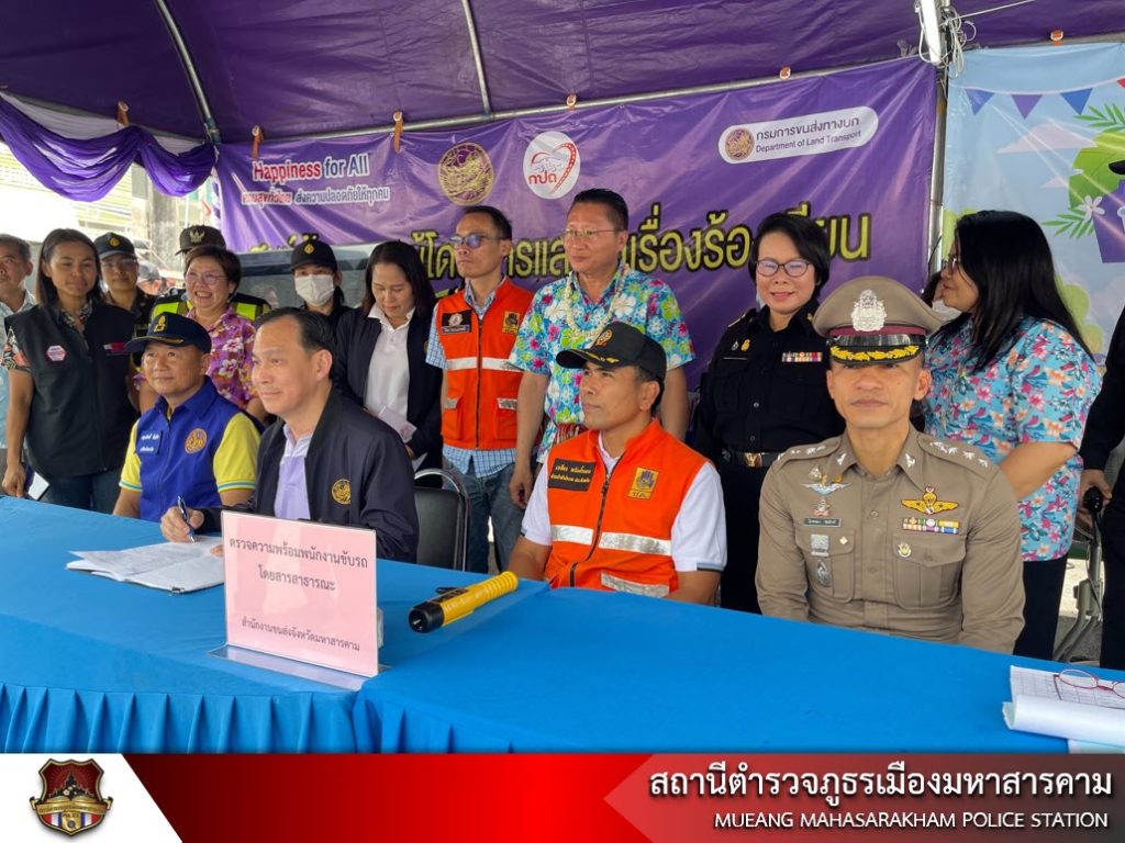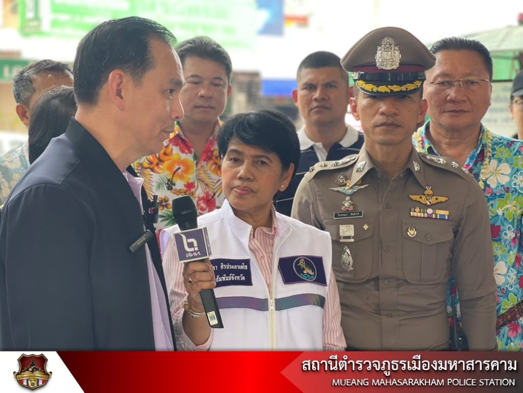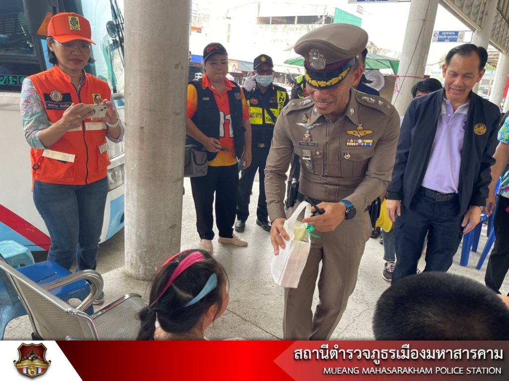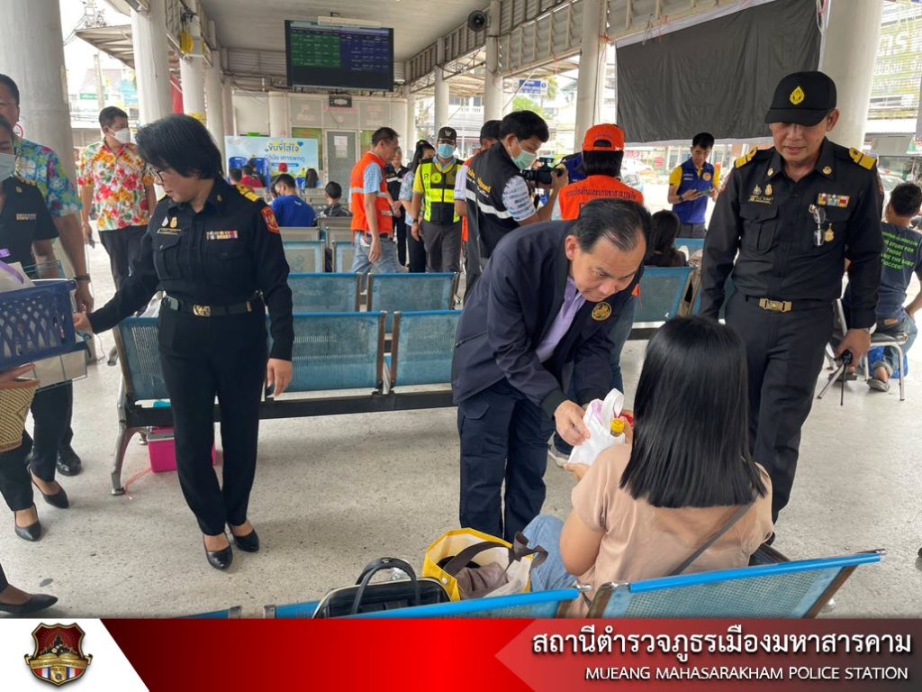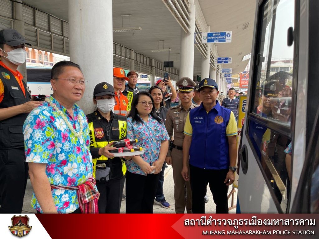 โดยมี พ.ต.อ.ไกรทอง ชัยสิงห์ ผกก.สภ.เมืองมหาสารคาม, หัวหน้าส่วนราชการ, เจ้าหน้าที่ที่เกี่ยวข้อง และข้าราชการตำรวจ สภ.เมืองมหาสารคาม ให้การต้อนรับ และอยู่ปฏิบัติหน้าที่ให้บริการประชาชน จากนั้นได้มอบสิ่งของ น้ำดื่ม เพื่อเป็นขวัญกำลังใจให้เจ้าหน้าที่ผู้ปฏิบัติงาน พบปะกับผู้ประอกบการขนส่ง พร้อมทั้งรณรงค์ ประชาสัมพันธ์เพื่อป้องกัน ลดอุบัติเหตุทางถนนช่วงเทศกาลสงกรานต์ 2566 สร้างความเชื่อมั่นด้านความปลอดภัยในการใช้บริการรถโดยสารสาธารณะให้กับประชาชน