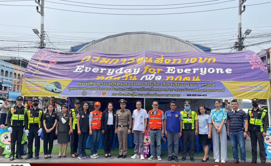 เมื่อวันที่ 14 เมษายน 2566 เวลา 10.00 น. นายเสกสม อัครพันธุ์ รองอธิบดีกรมการขนส่งทางบก พร้อมคณะ ลงพื้นที่ออกตรวจเยี่ยมจุดบูรณาการร่วม ฯ บริการประชาชนในช่วงเทศกาลสงกรานต์ 2566 ณ สถานีขนส่งผู้โดยสารจังหวัดมหาสารคาม อ.เมืองมหาสารคาม จ.มหาสารคาม