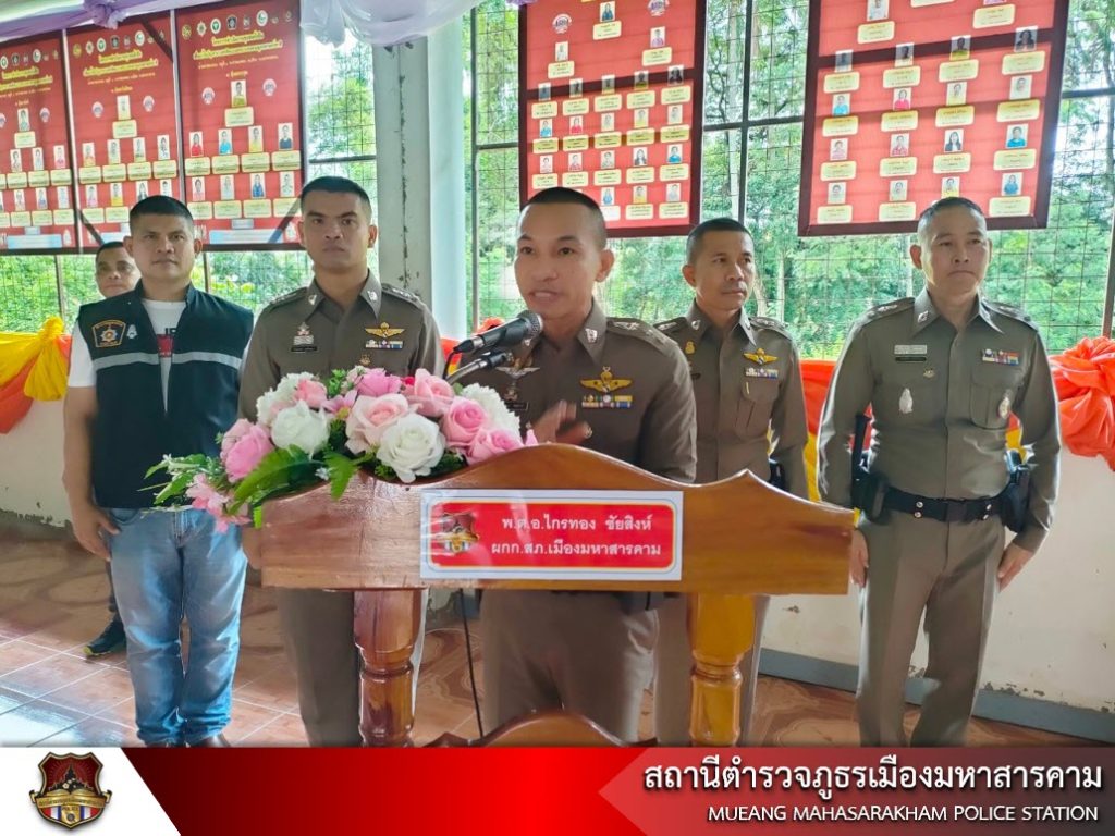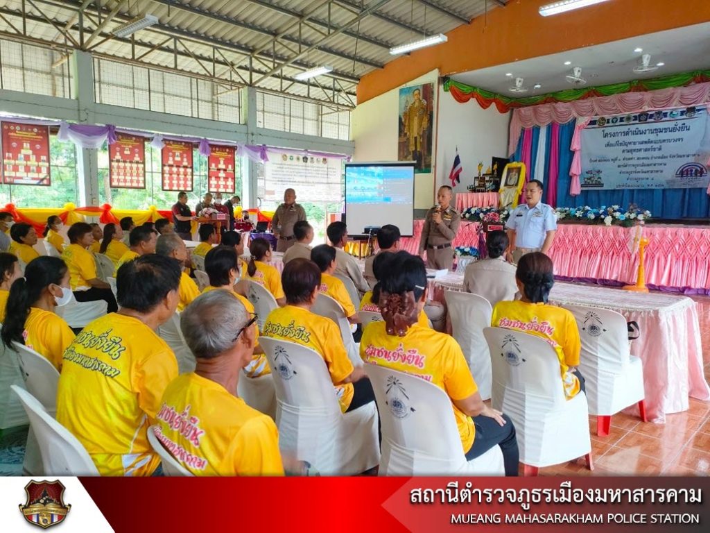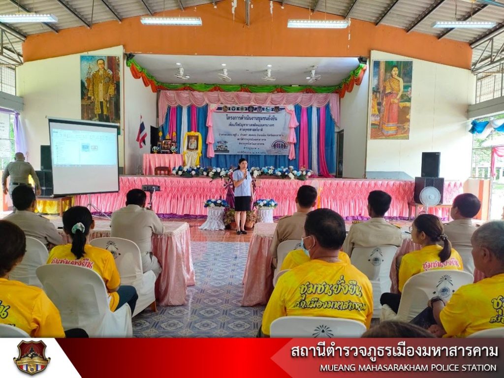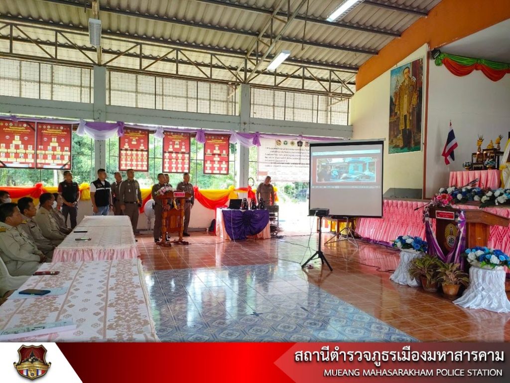 พ.ต.อ.ไกรทอง ชัยสิงห์ ผกก.สภ.เมืองมหาสารคาม ได้บรรยายสรุป วัตถุงประสงค์ และผลการดำเนินงานของ โครงการชุมชนยั่งยืน เพื่อแก้ไขปัญหายาเสพติดแบบครบวงจร ตามยุทธศาสตร์ชาติ สภ.เมืองมหาสารคาม ผ่านการร่วมรับชมรับชมวีดิทัศน์การดำเนินโครงการ ฯ ของ สภ.เมืองมหาสารคาม