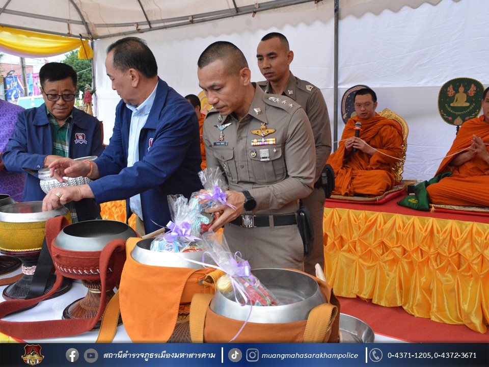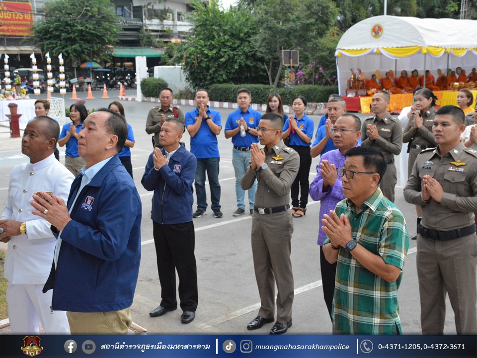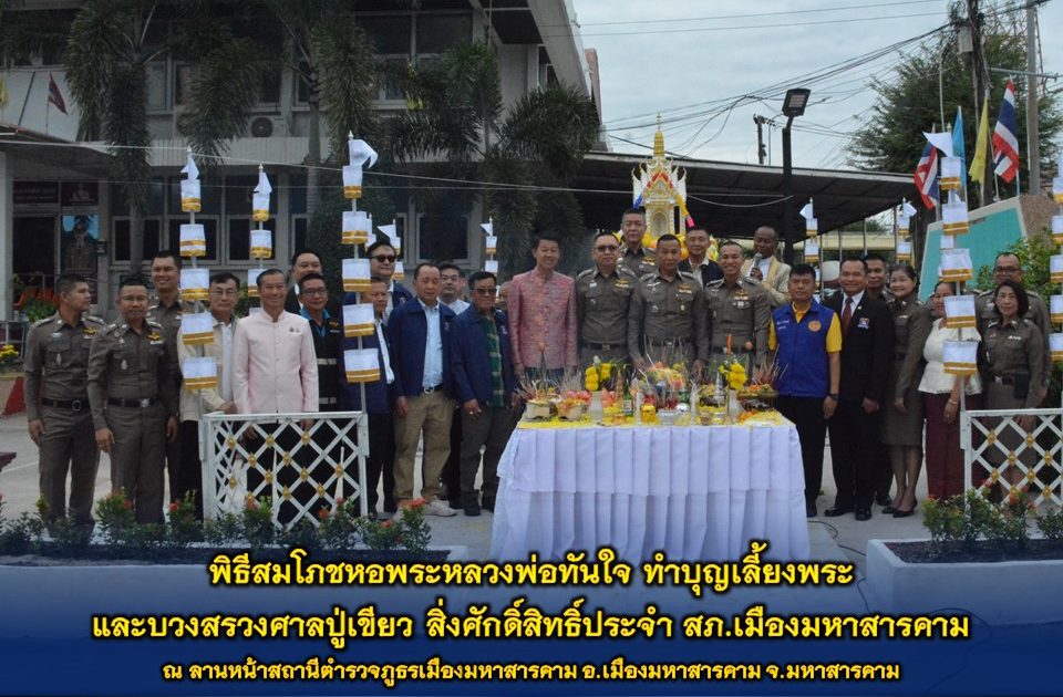 พร้อมด้วยหัวหน้าส่วนราชการอำเภอเมืองมหาสารคาม, หัวหน้าสถานีตำรวจ ในสังกัด ภ.จว.มหาสารคาม ข้าราชการตำรวจ สภ.เมืองมหาสารคาม และครอบครัวตำรวจ ร่วมพิธีสมโภชหอพระหลวงพ่อทันใจ ทำบุญเลี้ยงพระ และบวงสรวงศาลปู่เขียว สิ่งศักดิ์สิทธิ์ประจำ สภ.เมืองมหาสารคาม เพื่อเป็นสิริมงคลแก่ข้าราชการตำรวจและครอบครัว ณ ลานหน้าสถานีตำรวจภูธรเมืองมหาสารคาม