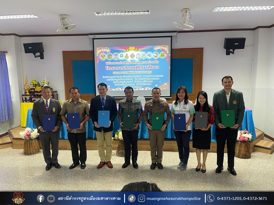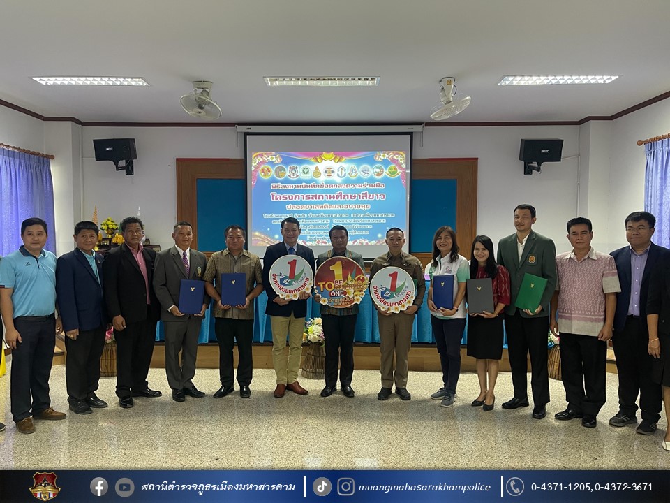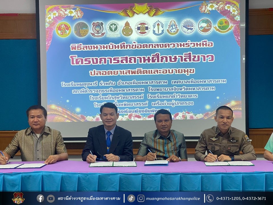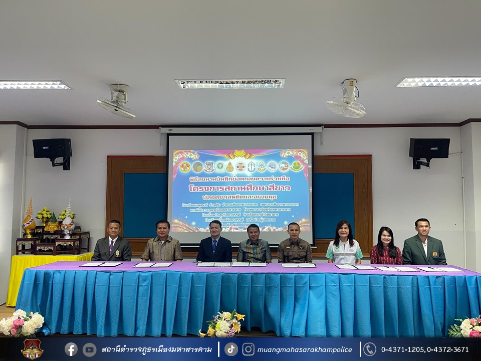🔸ร่วมลงนามบันทึกความร่วมมือ(Mou) โครงการสถานศึกษาสีขาว ปลอดยาเสพติดและอบายมุข ณ หอประชุมโรงเรียนผดุงนารี อ.เมืองมหาสารคาม จ.มหาสารคาม