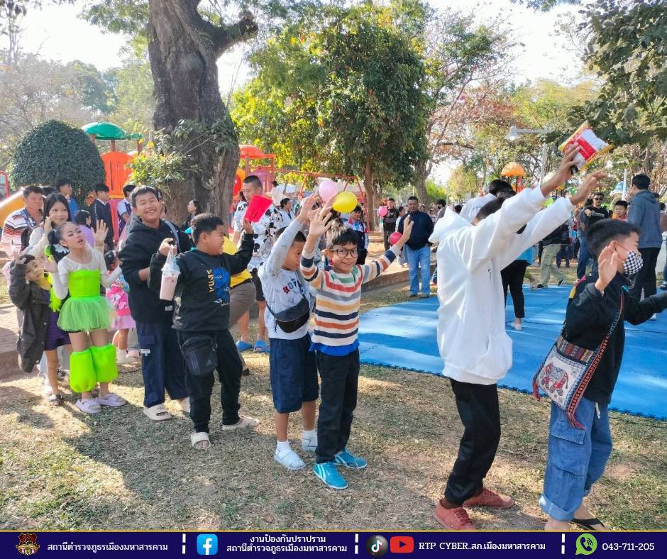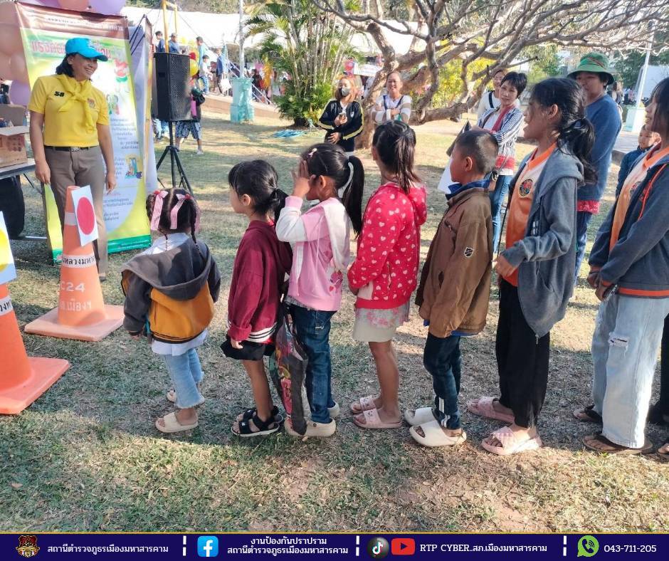 📌กิจกรรมที่ 1 ร่วมงานวันเด็กแห่งชาติ ประจำปี 2568 และร่วมกิจกรรมฯ ซึ่งได้จัดซุ้มของ สภ.เมืองมหาสารคาม แจกขนม และกิจจรรมเล่นเกมส์ (กระโดดตามสีสัญญาณไฟจราจรฮาเฮ) พร้อมให้ความรู้สีของสัญญาณไฟจราจรแก่เด็กที่ร่วมเล่นเกมส์ โดยมี นายวิบูรณ์ แววบัณฑิต ผู้ว่าราชการจังหวัดมหาสารคาม เป็นประธานในพิธีเปิดกิจกรรมฯ ณ สวนสุขภาพเฉลิมพระเกียรติสมเด็จพระนางเจ้าสิริกิติ์ พระบรมราชินีนาถ (สวนสุขภาพ) ต.ตลาด อ.เมืองมหาสารคาม จ.มหาสารคาม