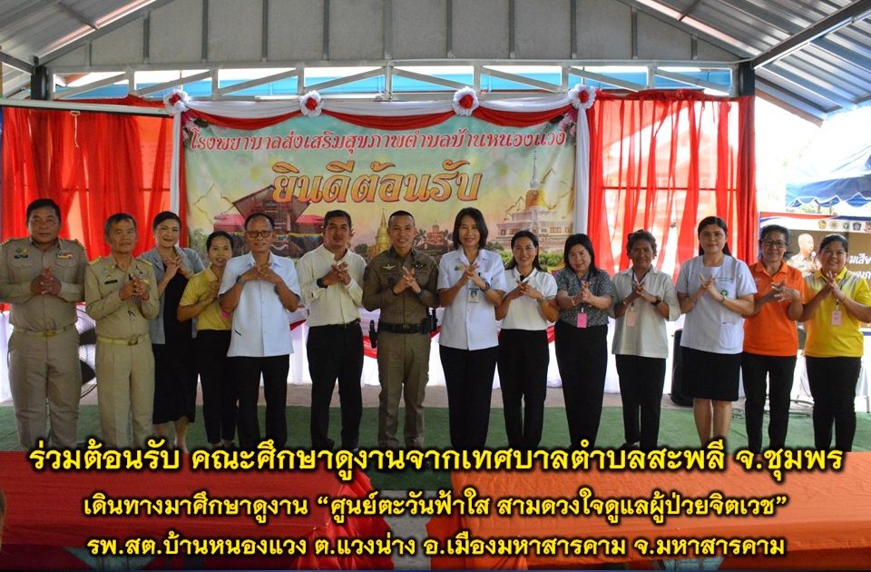 🔸พร้อมด้วยข้าราชการตำรวจ สภ.เมืองมหาสารคาม ร่วมต้อนรับ คณะศึกษาดูงานจากเทศบาลตำบลสะพลี จ.ชุมพร ได้เดินทางมาศึกษาดูงาน “ศูนย์ตะวันฟ้าใส สามดวงใจดูแลผู้ป่วยจิตเวช” รพ.สต.บ้านหนองแวง ต.แวงน่าง อ.เมืองมหาสารคาม จ.มหาสารคาม