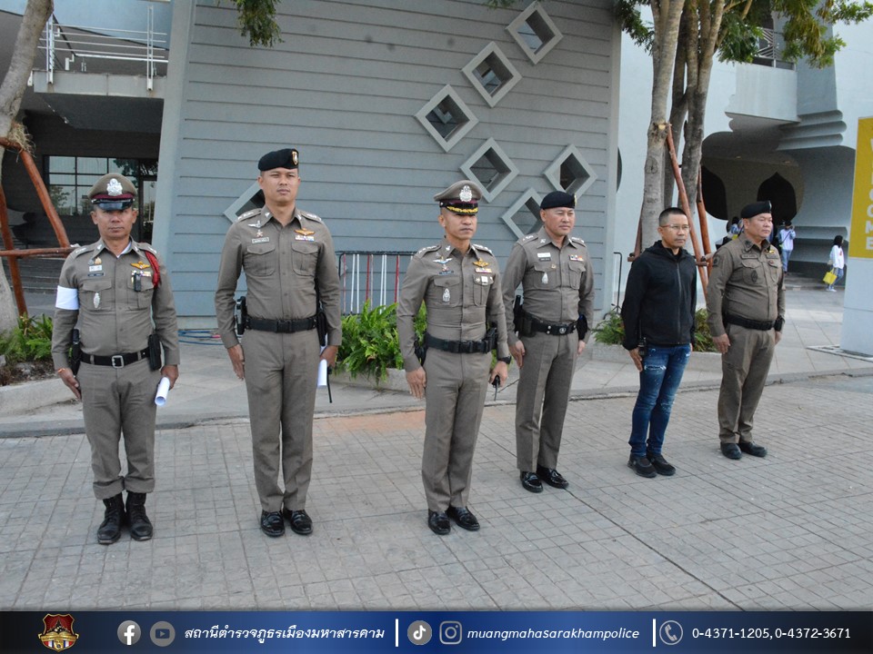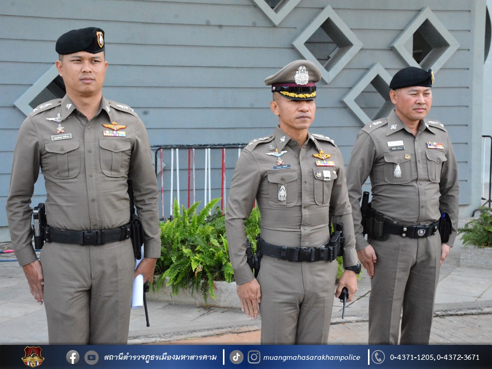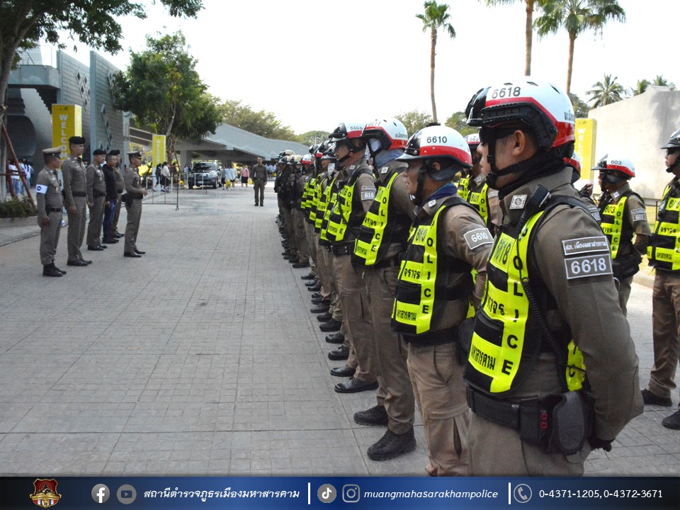 เรียกแถวตรวจกำลังเจ้าหน้าที่ตำรวจ สภ.เมืองมหาสารคาม ตรวจความเรียบร้อยอุปกรณ์ การแต่งกาย ชี้แจงการปฏิบัติภารกิจ ดูแลรักษาความปลอดภัย และอำนวยความสะดวกด้านการจราจร นายกรัฐมนตรี ซึ่งมีกำหนดการเดินทางมาปฏิบัติภารกิจในพื้นที่ จังหวัดมหาสารคาม ในวันที่ 20 ธันวาคม 2567 ณ อาคารเฉลิมพระเกียรติฯ มหาวิทยาลัยมหาสารคาม