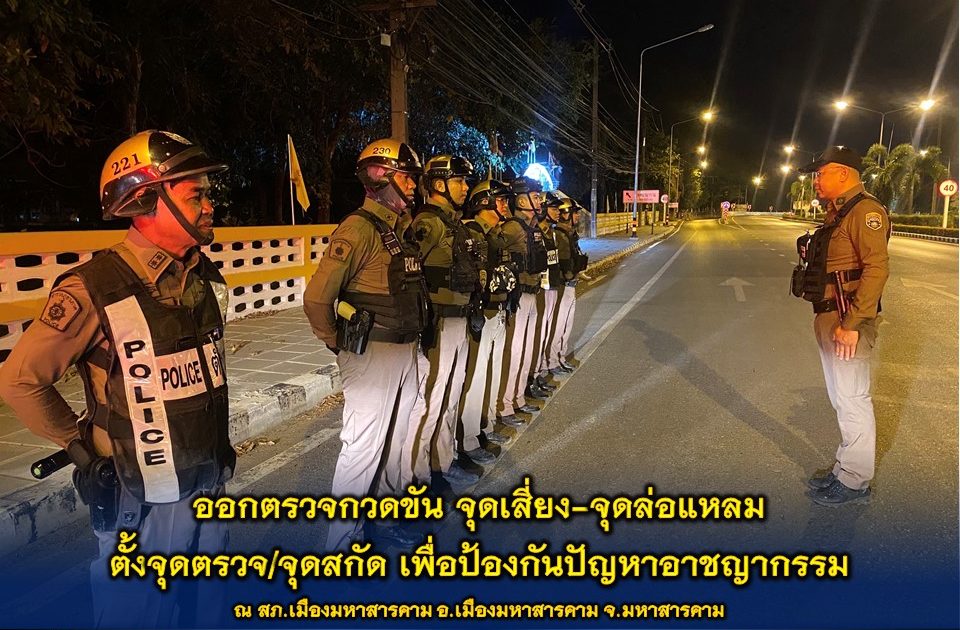 🔸นำกำลังเจ้าหน้าที่ตำรวจสายตรวจ สภ.เมืองมหาสารคาม ออกตรวจกวดขัน จุดเสี่ยง-จุดล่อแหลม โรงแรม-หอพัก และตั้งจุดตรวจ/จุดสกัด เพื่อป้องกันปัญหาอาชญากรรม และเป็นมาตราการป้องกันการก่อเหตุลักทรัพย์รถจักรยานยนต์ ป้องกันกลุ่มวัยรุ่นมั่วสุม จับกลุ่มแข่งรถในทางสาธารณะ แต่งซิ่ง ท่อเสียงดัง ก่อความเดือดร้อนรำคาญให้แก่ประชาชนในพื้นที่ สภ.เมืองมหาสารคาม