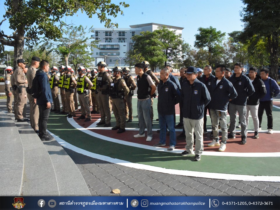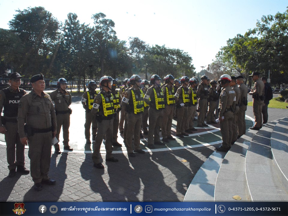 เรียกแถวตรวจกำลังเจ้าหน้าที่ตำรวจ สภ.เมืองมหาสารคาม ตรวจความเรียบร้อยอุปกรณ์ การแต่งกาย ชี้แจงการปฏิบัติภารกิจ ดูแลรักษาความปลอดภัย และอำนวยความสะดวกด้านการจราจร พล.อ.ดาว์พงษ์ รัตนสุวรรณ องคมนตรี มีกำหนดการเดินทางตรวจเยี่ยมมหาวิทยาลัยราชภัฎมหาสารคาม ระหว่างวันที่ 18 – 19 ธันวาคม 2567 ณ ลานหน้าอาคาร 72 พรรษาฯ มหาวิทยาลัยราชภัฎมหาสารคาม