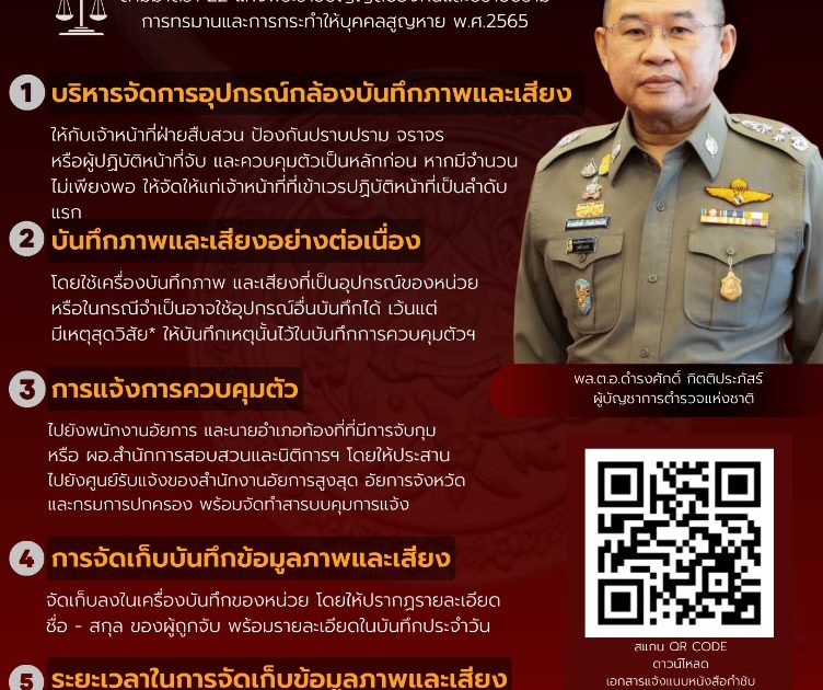 แนวทางการปฏิบัติเกี่ยวกับการบันทึกภาพและเสียงในขณะจับและควบคุมตัวตามมาตรา 22 แห่ง พ.ร.บ.ป้องกันและปราบปรามการทรมานและการกระทำให้บุคคลสูญหาย พ.ศ.2565