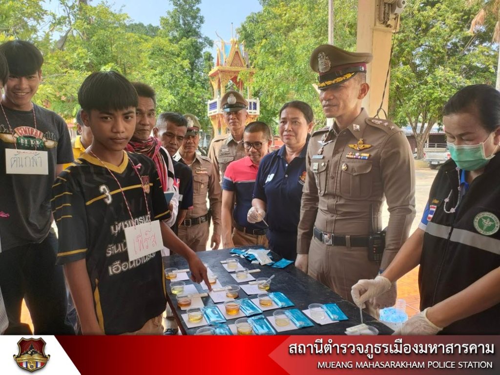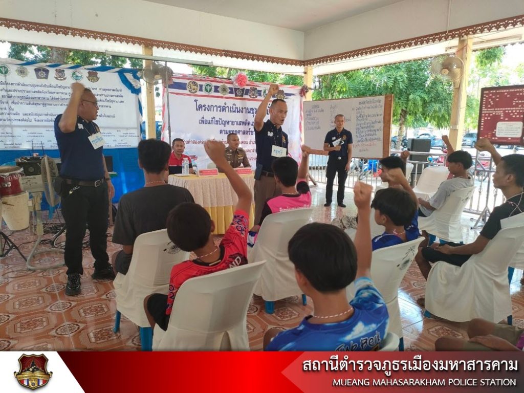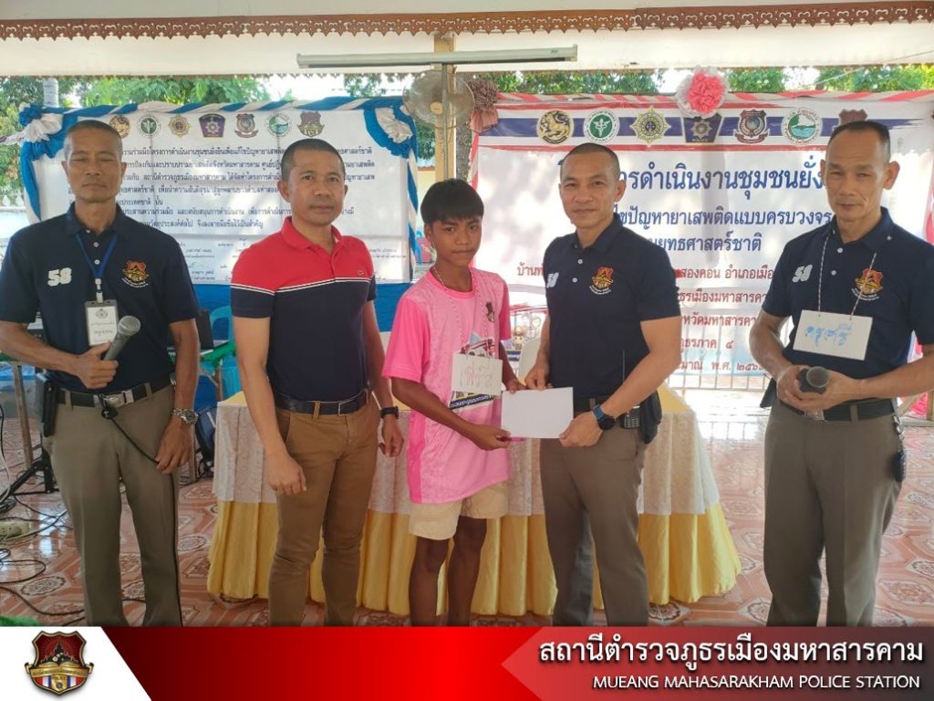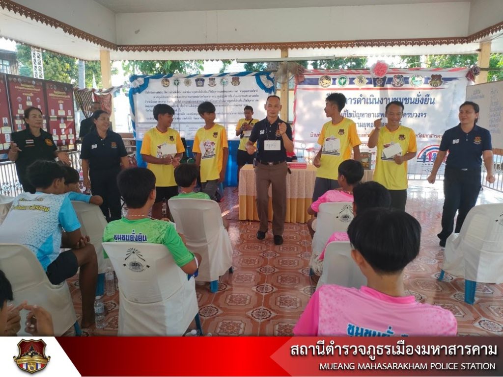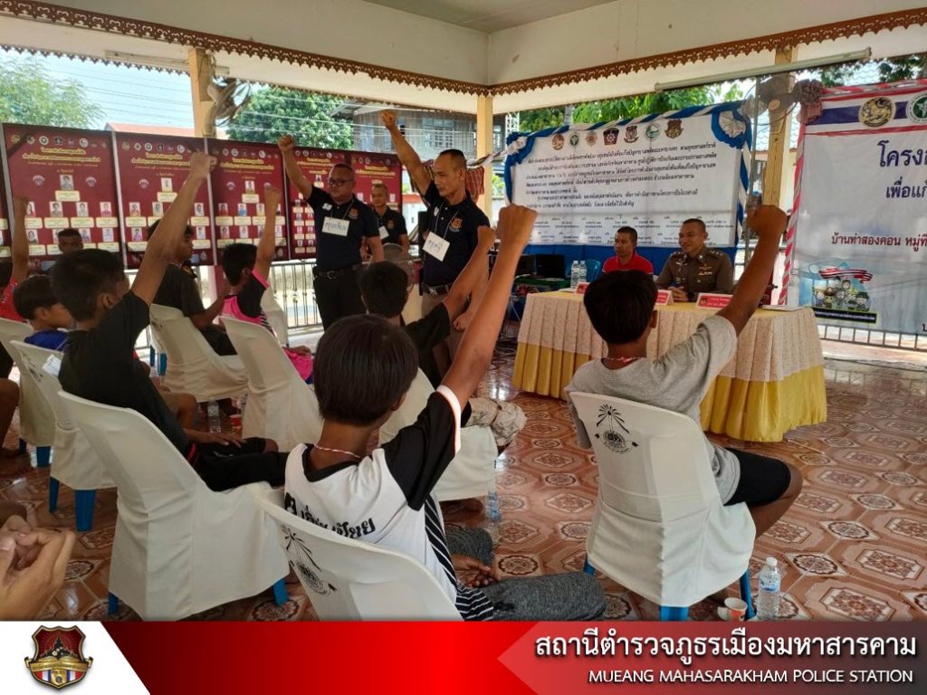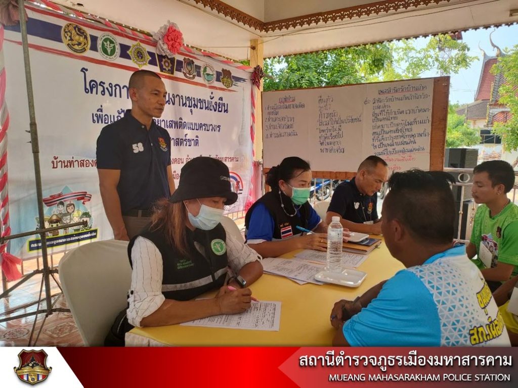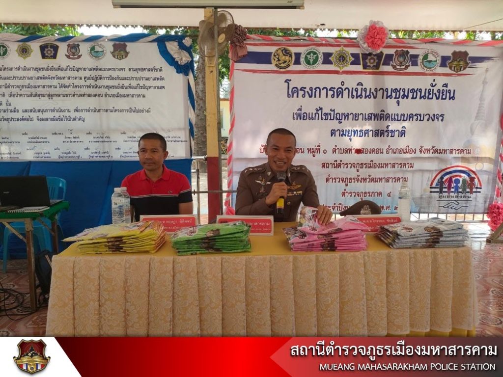 เมื่อวันที่ 20 พฤษภาคม 2566 เวลา 13.00 น. พ.ต.อ.ไกรทอง ชัยสิงห์ ผกก.สภ.เมืองมหาสารคาม, พ.ต.ท.กฤษฎา นิติพจน์ รอง ผกก.สส.สภ.เมืองมหาสารคาม รพ.สต.ท่าสองคอน ผู้ใหญ่บ้าน ผู้นำชุมชน พร้อมด้วยข้าราชการตำรวจชุดชุมชนยั่งยืน สภ.เมืองมหาสารคาม นักเรียนนายสิบตำรวจฝึกปฏิบัติราชการ ร่วมดำเนินโครงการชุมชนยั่งยืนเพื่อแก้ไขปัญหายาเสพติดแบบครบวงจร ตามยุทธศาสตร์ชาติ สภ.เมืองมหาสารคาม ณ วัดบ้านท่าสองคอน