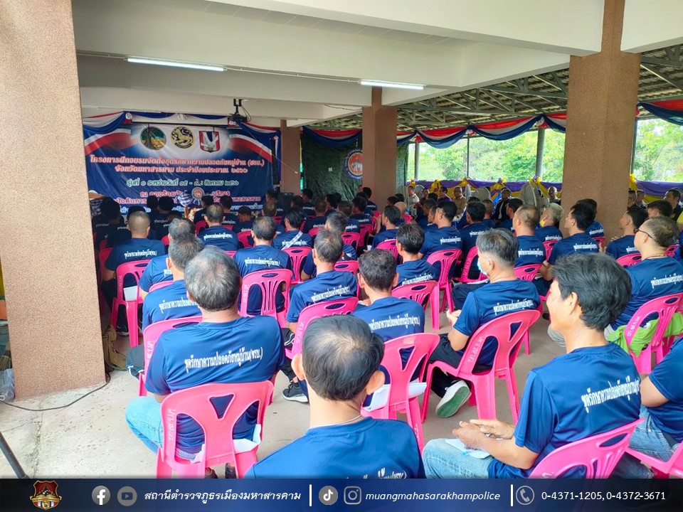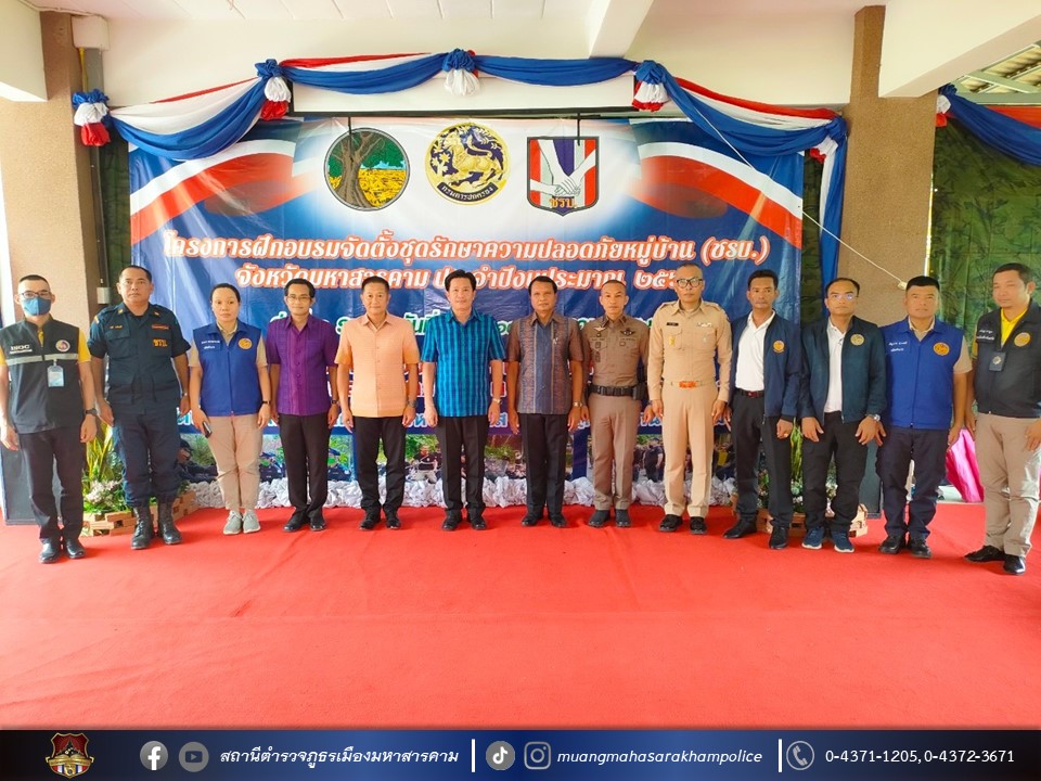 โครงการฝึกอบรมจัดตั้งชุดรักษาความปลอดภัยหมู่บ้าน (ชรบ.) จังหวัดมหาสารคาม ประจำปี 2566 รุ่นที่ 1 ระหว่างวันที่ 15 – 17 สิงหาคม 2566 ณ ณ กองร้อยบังคับการและบริการ กองบังคับการกองอาสารักษาดินแดน จังหวัดมหาสารคาม โดยมี นายเกียรติศักดิ์ ตรงศิริ ผู้ว่าราชการจังหวัดมหาสารคาม เป็นประธาน