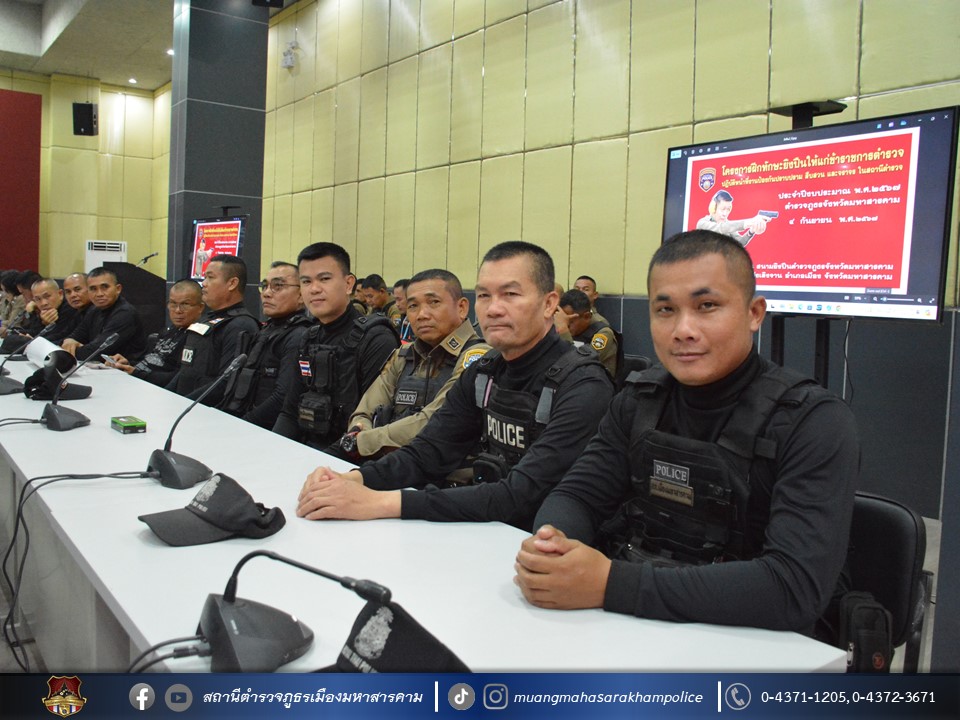 🔸พร้อมด้วยหัวหน้าสถานีตำรวจในสังกัด ชุดครูฝึก ผู้รับการฝึกอบรม ประกอบด้วย กก.สส.ภ.จว.มหาสารคาม, สภ.เมืองมหาสารคาม, สภ.เขวาใหญ่, สภ.บรบือ, สภ.แกดำ, สภ.กันทรวิชัย, สภ.ดอนหว่าน, สภ.ท่าตูม ร่วมพิธีเปิดการฝึกอบรมโครงการฝึกอบรมทักษะยิงปืนให้แก่ข้าราชการตำรวจ ผู้ปฏิบัติหน้าที่งานป้องกันปราบปราม สืบสวน และจราจรในสถานีตำรวจ ตำรวจภูธรจังหวัดมหาสารคาม ระหว่างวันที่ 4-6 กันยายน 2567 ณ ห้องประชุมเวชโอสถ ภ.จว.มหาสารคาม