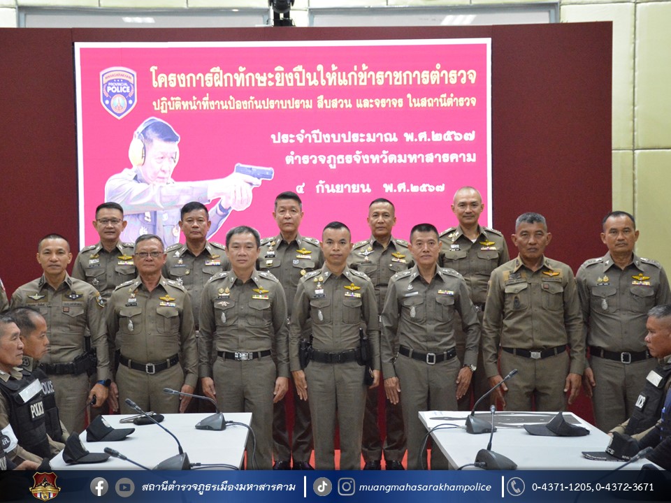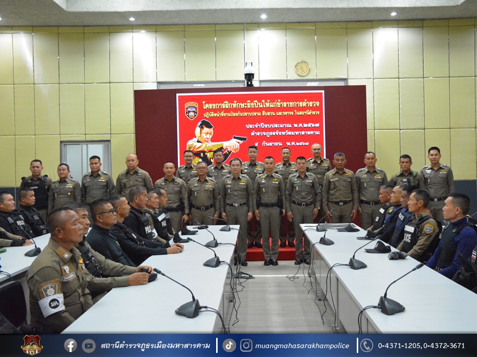 🔸พล.ต.ต.พรชัย ชลอเดช ผบก.ภ.จว.มหาสารคาม ประธานในพิธีโครงการฝึกอบรมทักษะยิงปืนให้แก่ข้าราชการตำรวจ ผู้ปฏิบัติหน้าที่งานป้องกันปราบปราม สืบสวน และจราจรในสถานีตำรวจ สังกัดตำรวจภูธรจังหวัดมหาสารคาม โดยมี