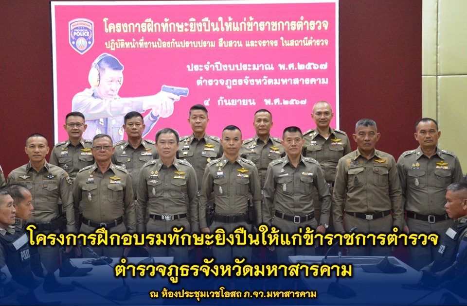 🔸พล.ต.ต.พรชัย ชลอเดช ผบก.ภ.จว.มหาสารคาม ประธานในพิธีโครงการฝึกอบรมทักษะยิงปืนให้แก่ข้าราชการตำรวจ ผู้ปฏิบัติหน้าที่งานป้องกันปราบปราม สืบสวน และจราจรในสถานีตำรวจ สังกัดตำรวจภูธรจังหวัดมหาสารคาม โดยมี