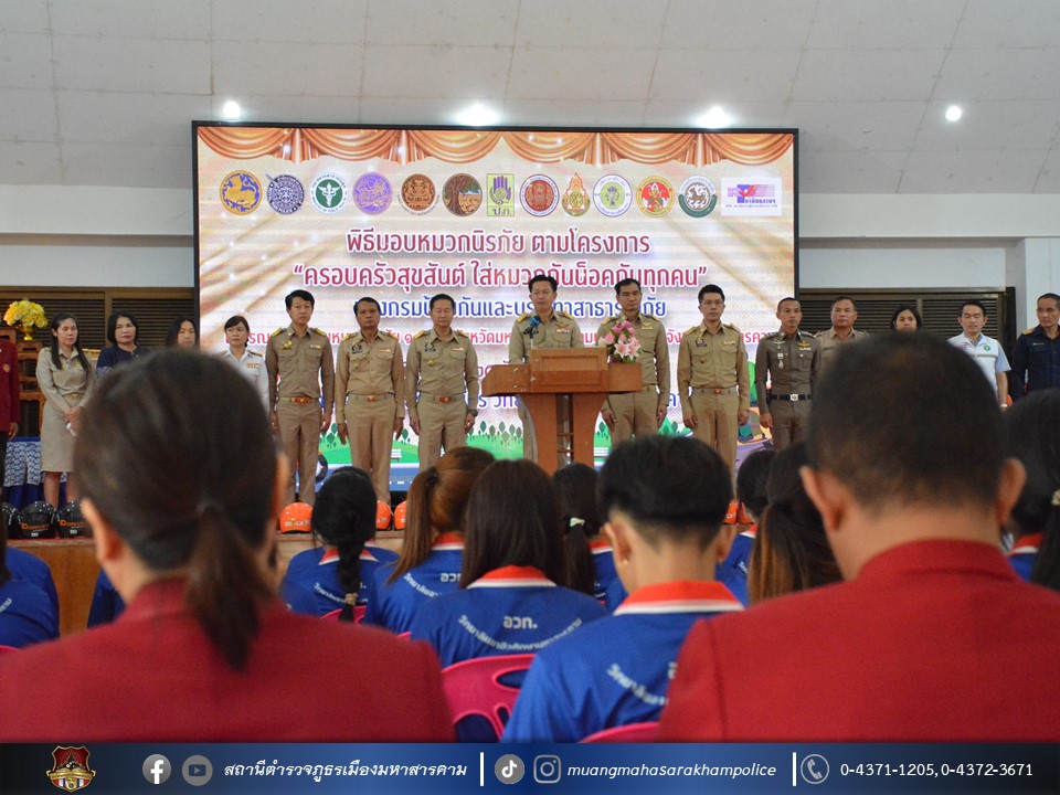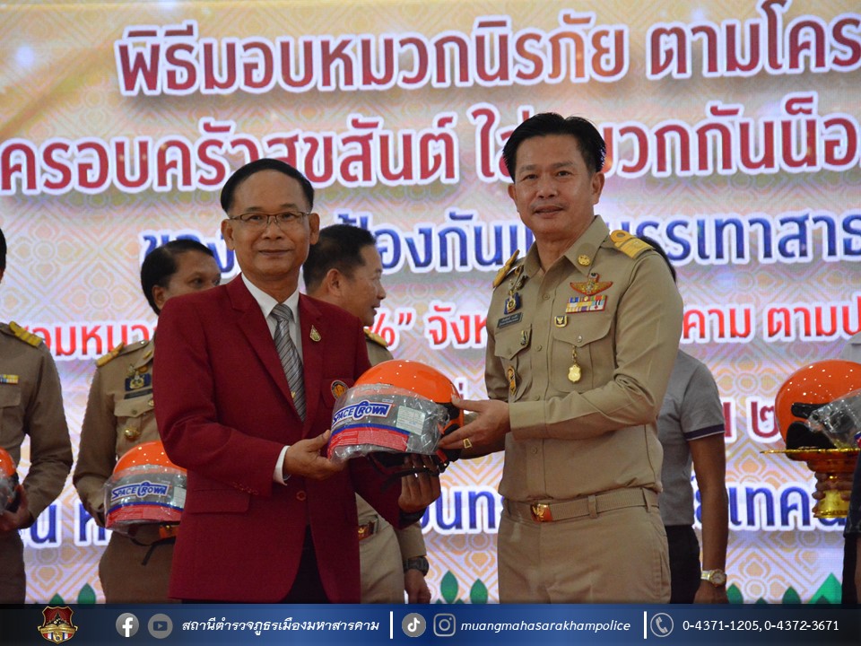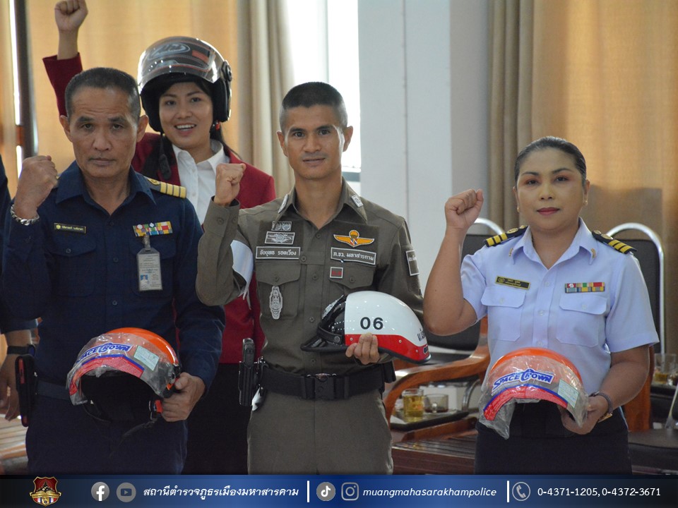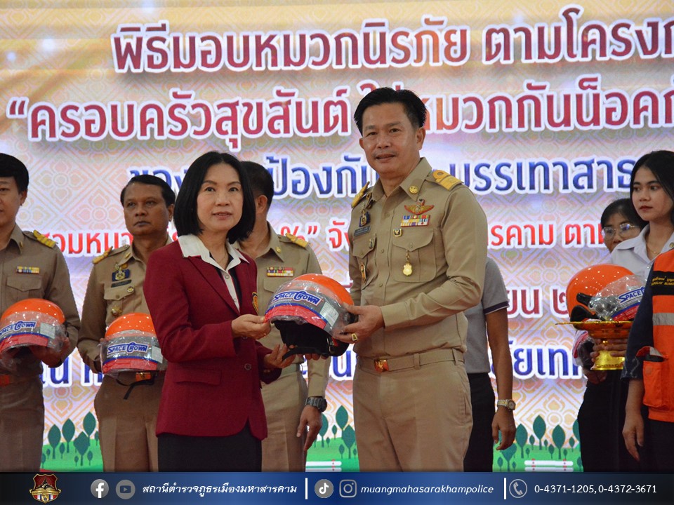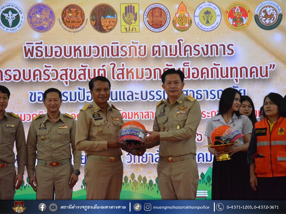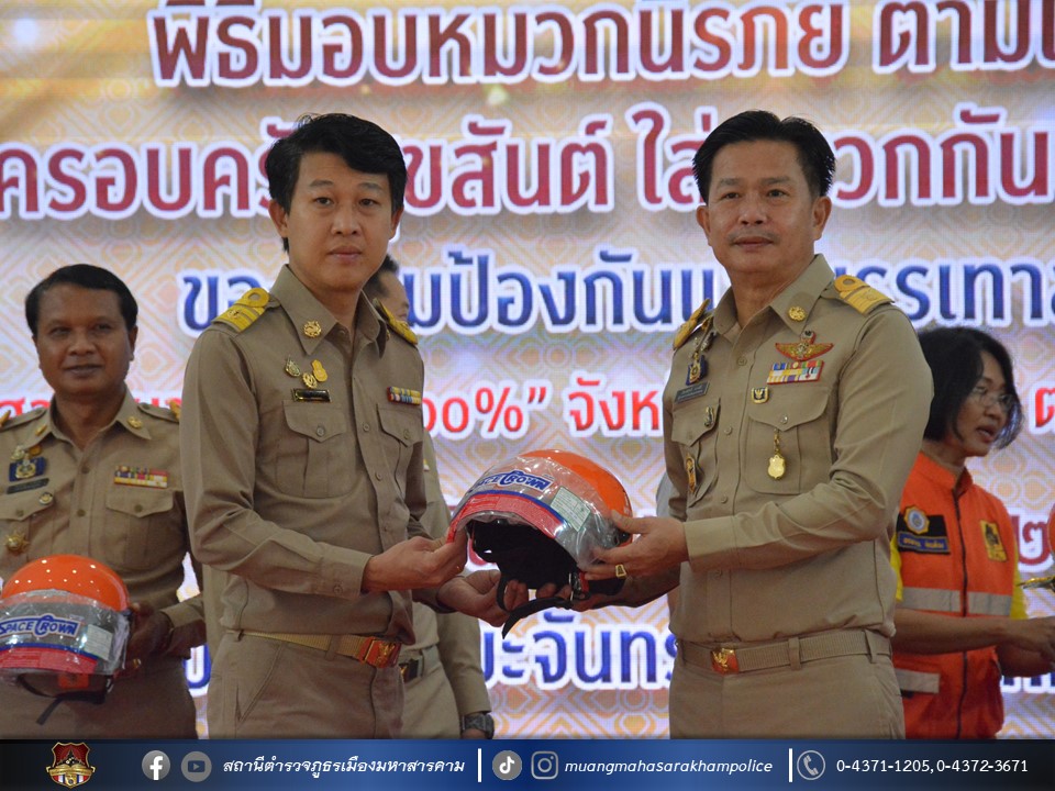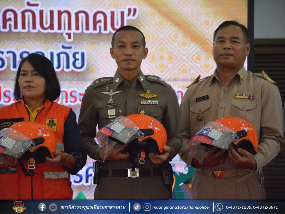 ร่วมพิธีมอบหมวกนิรภัย ตามโครงการ “ครอบครัวสุขสันต์ ใส่หมวกกันน็อคกันทุกคน” ของกรมป้องกันและบรรเทาสาธารณภัยจังหวัดมหาสารคาม และรณรงค์ “สวมหมวกนิรภัย 100 %” ตามประกาศวาระจังหวัดมหาสารคาม พร้อมปล่อยขบวนจักรยานยนต์รณรงค์สวมหมวกนิรภัย 100% ณ หอประชุมสุริยะจันทร์ วิทยาลัยเทคนิคมหาสารคาม โดยมี นายเกียรติศักดิ์ ตรงศิริ ผู้ว่าราชการจังหวัดมหาสารคาม เป็นประธาน