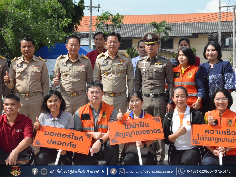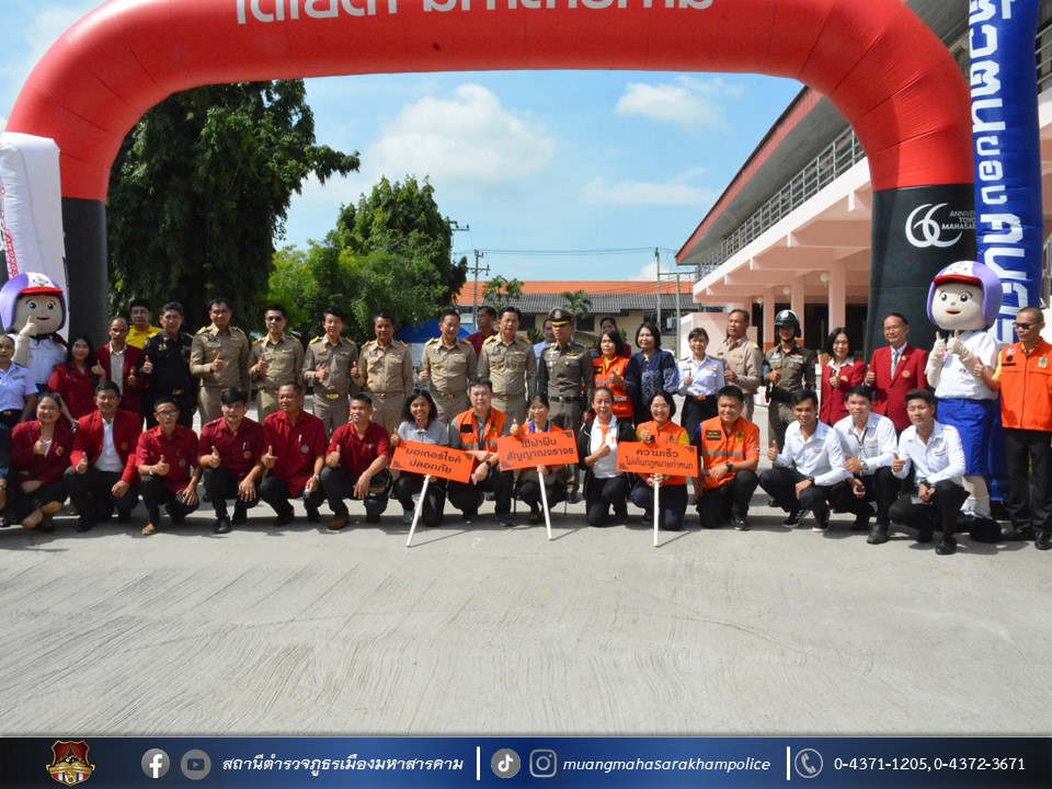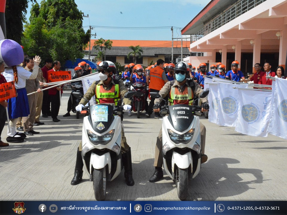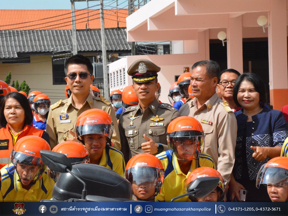 เมื่อวันที่ 25 กันยายน 2566 เวลา 09.00 น. พล.ต.ต.ดิเรก จิตอร่าม ผบก.ภ.จว.มหาสารคาม มอบหมายให้ พ.ต.อ.ไกรทอง ชัยสิงห์ ผกก.สภ.เมืองมหาสารคาม, พ.ต.ท.ชัยยุทธ รอดเวียง สว.จร.สภ.เมืองมหาสารคาม โดยมี นายนันทวิทย์ นาคแสง นายอำเภอเมืองมหาสารคาม, นายภาคิน ติระพงศ์ไพบูลย์ นายกเทศมนตรีเมืองมหาสารคาม ผู้แทนส่วนราชการ / ผู้อำนวยการสถานศึกษา / คณะครู / นักเรียน-นักศึกษา