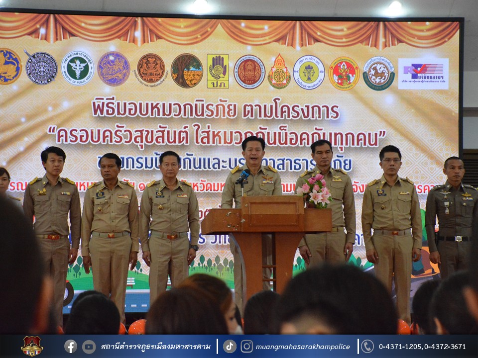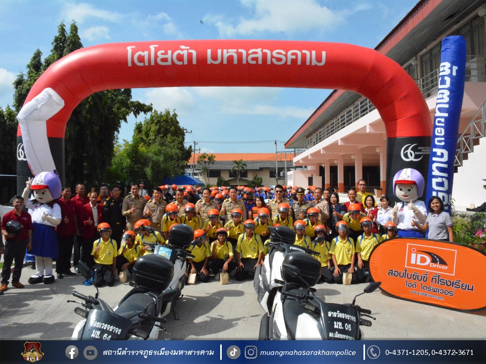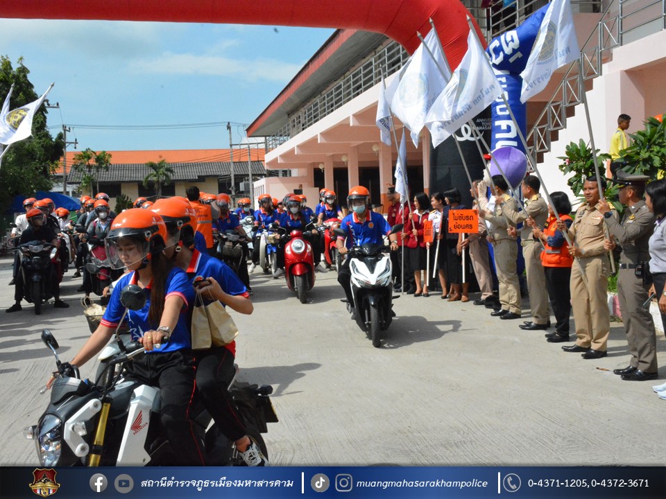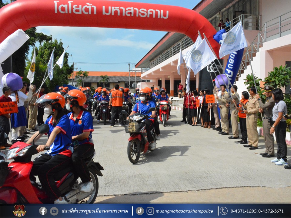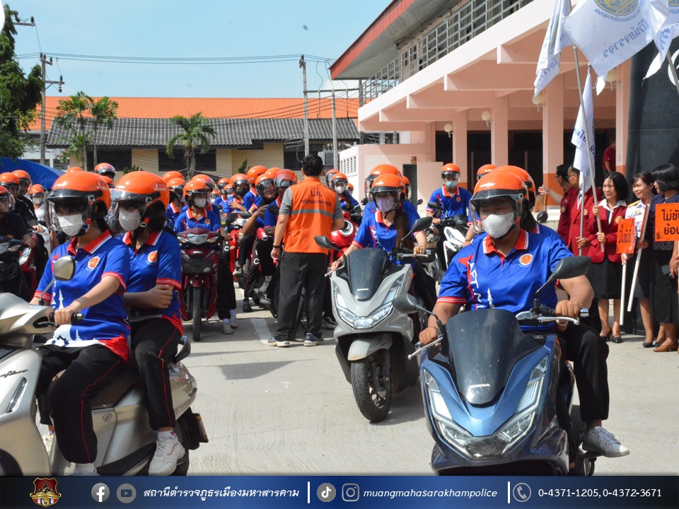 เมื่อวันที่ 25 กันยายน 2566 เวลา 09.00 น. พล.ต.ต.ดิเรก จิตอร่าม ผบก.ภ.จว.มหาสารคาม มอบหมายให้ พ.ต.อ.ไกรทอง ชัยสิงห์ ผกก.สภ.เมืองมหาสารคาม, พ.ต.ท.ชัยยุทธ รอดเวียง สว.จร.สภ.เมืองมหาสารคาม โดยมี นายนันทวิทย์ นาคแสง นายอำเภอเมืองมหาสารคาม, นายภาคิน ติระพงศ์ไพบูลย์ นายกเทศมนตรีเมืองมหาสารคาม ผู้แทนส่วนราชการ / ผู้อำนวยการสถานศึกษา / คณะครู / นักเรียน-นักศึกษา