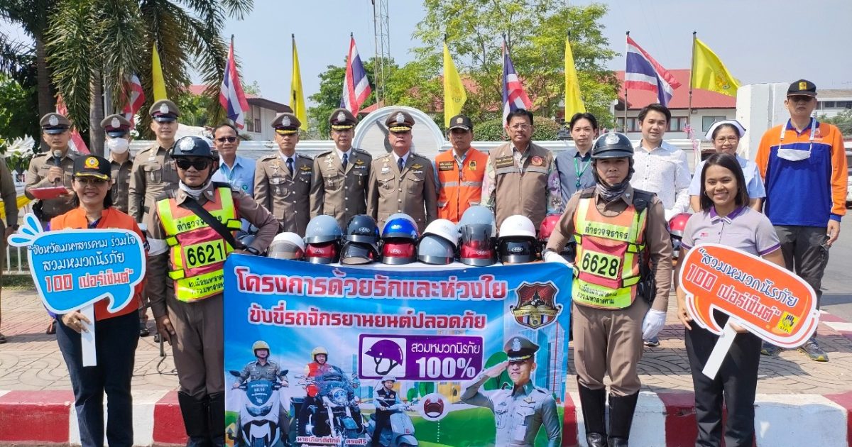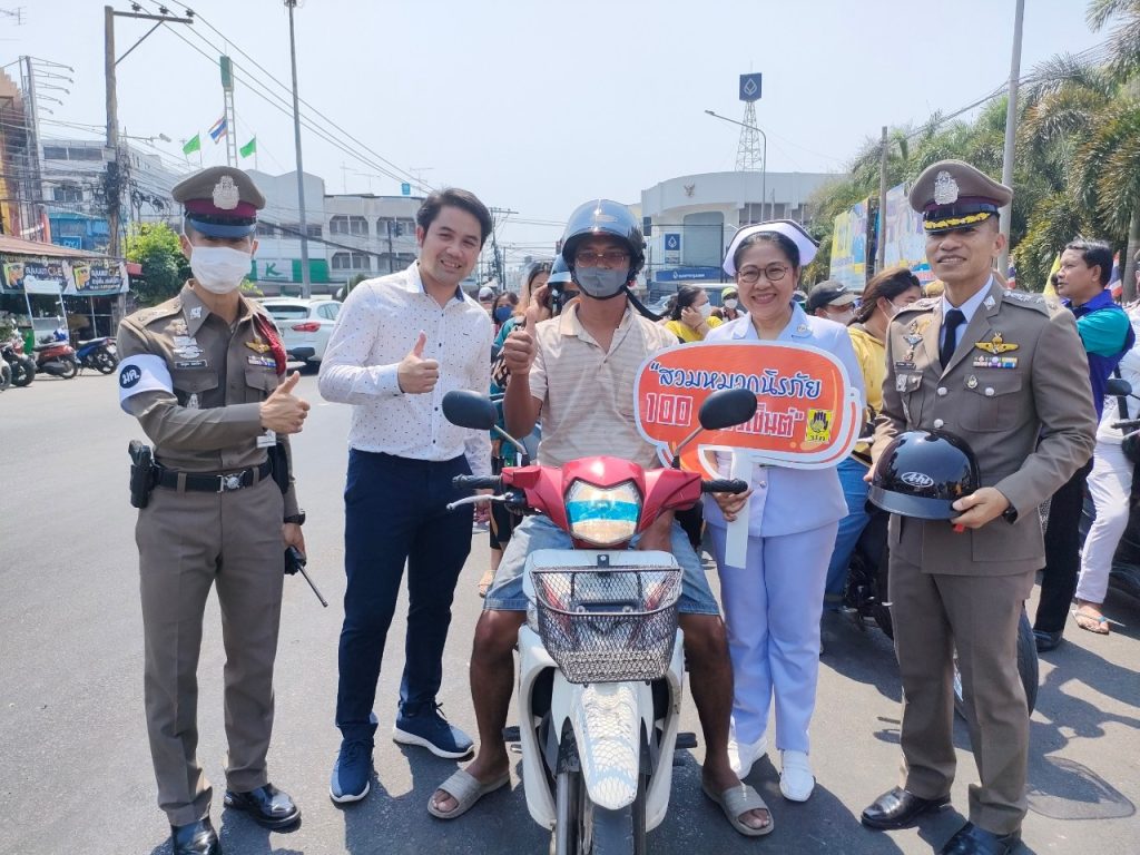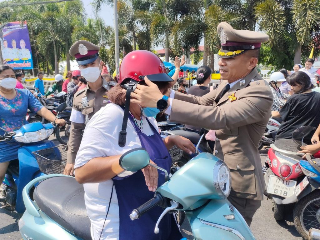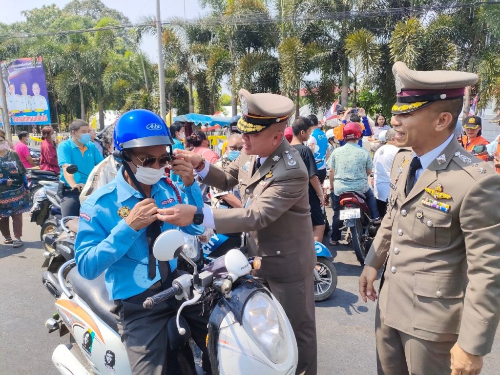 ร่วมกันทำกิจกรรมมอบหมวกนิรภัย จำนวน 150 ใบ ให้แก่ประชาชนผู้ใช้รถใช้ถนนที่ยังไม่มีหมวกนิรภัย เพื่อเป็นการรณรงค์ ประชาสัมพันธ์ รวมถึงการสร้างวินัยจราจร ควบคู่กับการบังคับใช้กฎหมายอย่างเหมาะสม ตามโครงการ “ด้วยรักและห่วงใย ขับขี่รถจักรยานยนต์ปลอดภัย สวมใส่หมวกนิรภัย 100%” ของ สภ.เมืองมหาสารคาม รวมทั้งเป็นการเตรียมความพร้อม และรณรงค์ลดอุบัติเหตุในช่วงเทศกาลสงกรานต์ 2566 ณ บริเวณด้านหน้า ประตูทางเข้า ภ.จว.มหาสารคาม