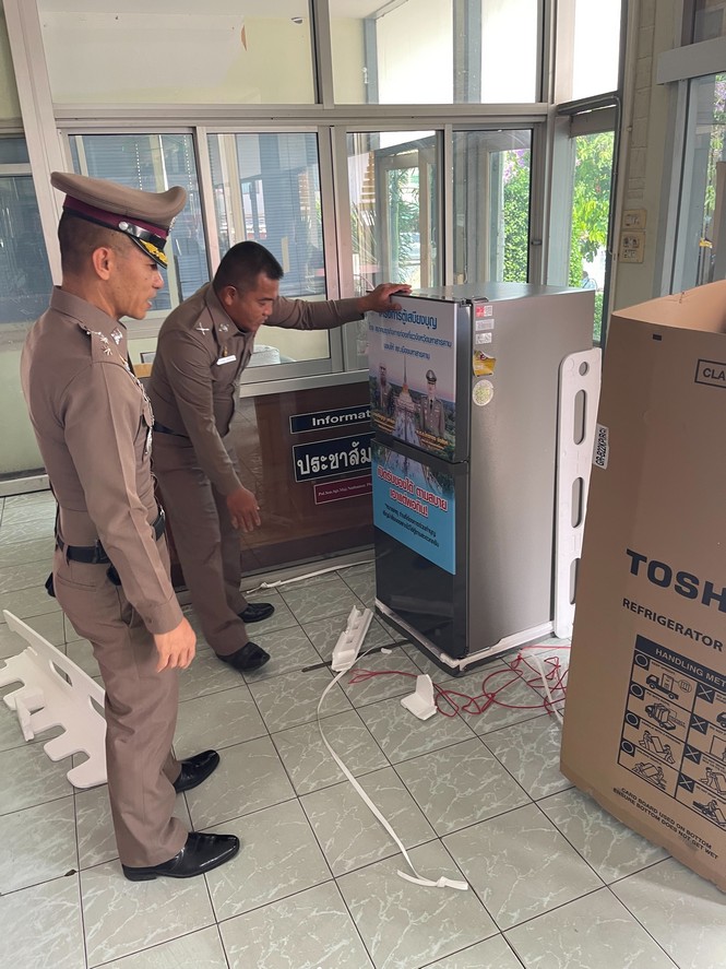 ผกก.ฯ รับมอบตู้เสบียงบุญ จากนายกสมาคมธุรกิจการท่องเที่ยวจังหวัดมหาสารคาม