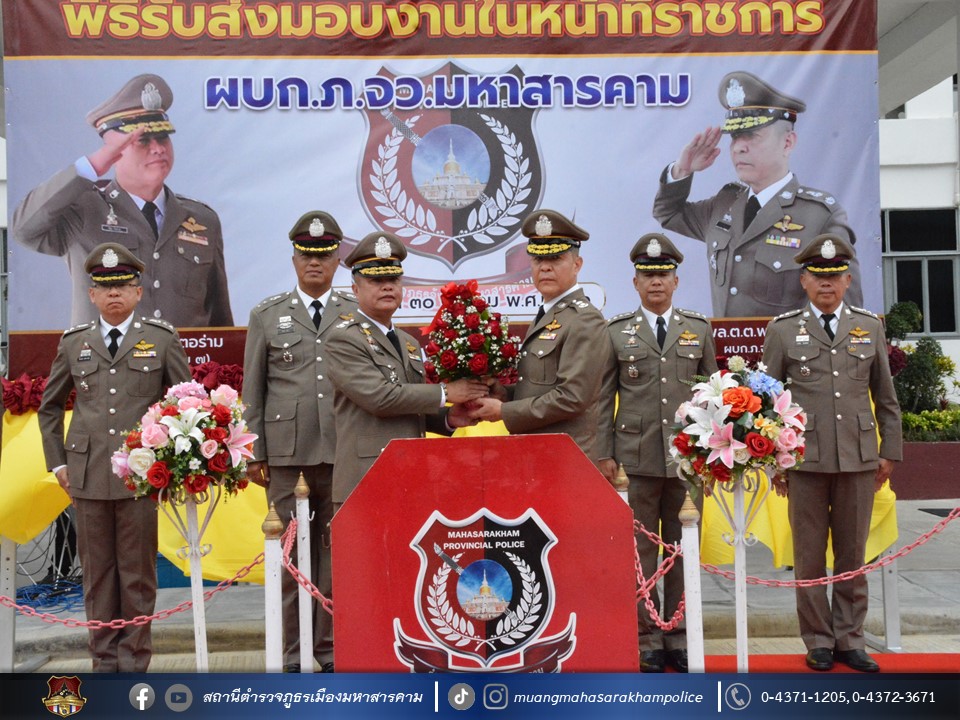 วันที่ 17 ตุลาคม 2566 เวลา 07.00 น. พล.ต.ต.ดิเรก จิตอร่าม ผบก.ภ.จว.มหาสารคาม (ประธานในพิธีฯ), พ.ต.อ.