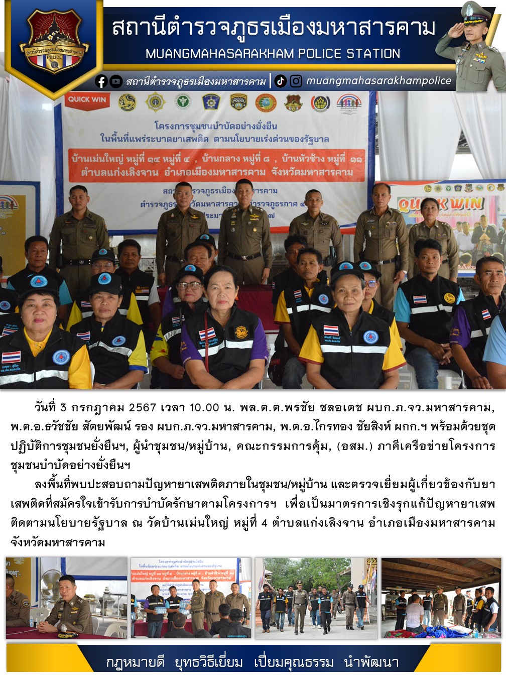 🚨สภ.เมืองมหาสารคาม/ภ.จว.มหาสารคาม🚨 🔷ตามโครงการชุมชนบำบัดอย่างยั่งยืน ในพื้นที่แพร่ระบาดยาเสพติด ตามน