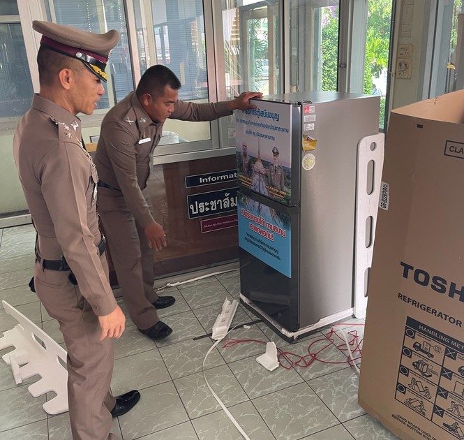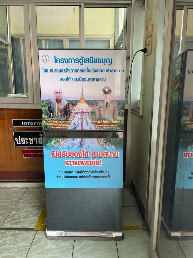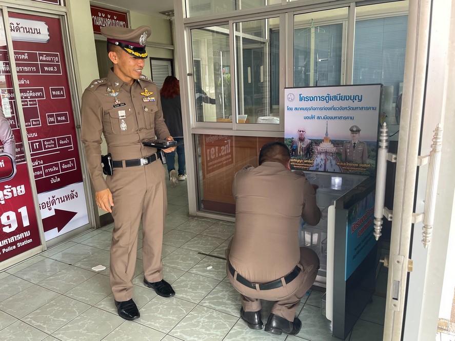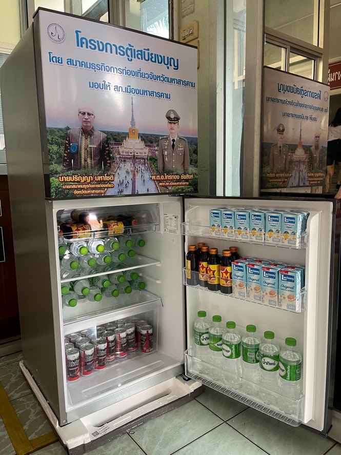 วันที่ 31มี.ค.66 เวลา 15.00 น.พ.ต.อ.ไกรทอง ชัยสิงห์ ผกก.สภ.เมืองมหาสารคาม รับมอบตู้เสบียงบุญ เพื่อแช่เย็น น้ำดื่ม นม กาแฟ เครื่องดื่มชูกำลัง จากนายปริญญา มหาโชติ นายกสมาคมธุรกิจการท่องเที่ยวจังหวัดมหาสารคาม วัตถุประสงค์เพื่อใช้สำหรับบริการประชาชนผู้ที่มาติดต่อราชการสถานีตำรวจภูธรเมืองมหาสารคาม ณ บริเวณจุดบริการประชาชน One Stop Service