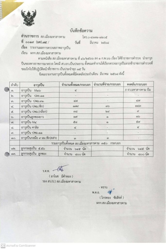 และชี้แจงแนวทางการเบิกจ่าย ยืม ใช้ทรัพย์สินของทางราชการ ของบริจาค เช่น อาวุธปืน วิทยุสื่อสาร และสิ่งของหลวงอื่นๆ กำชับเจ้าหน้าที่ผู้เก็บรักษา จัดเก็บทรัพย์สินของทางราชการ ของบริจาค การจัดเก็บของกลาง ให้เป็นไปตามระเบียบ ข้อปฎิบัติของสำนักงานตำรวจแห่งชาติ และให้เกิดประโยชน์สูงสุดต่อทางราชการ โดยมีข้าราชการตำรวจ สภ.เมืองมหาสารคาม ร่วมรับฟังการประชุมชี้แจ้ง